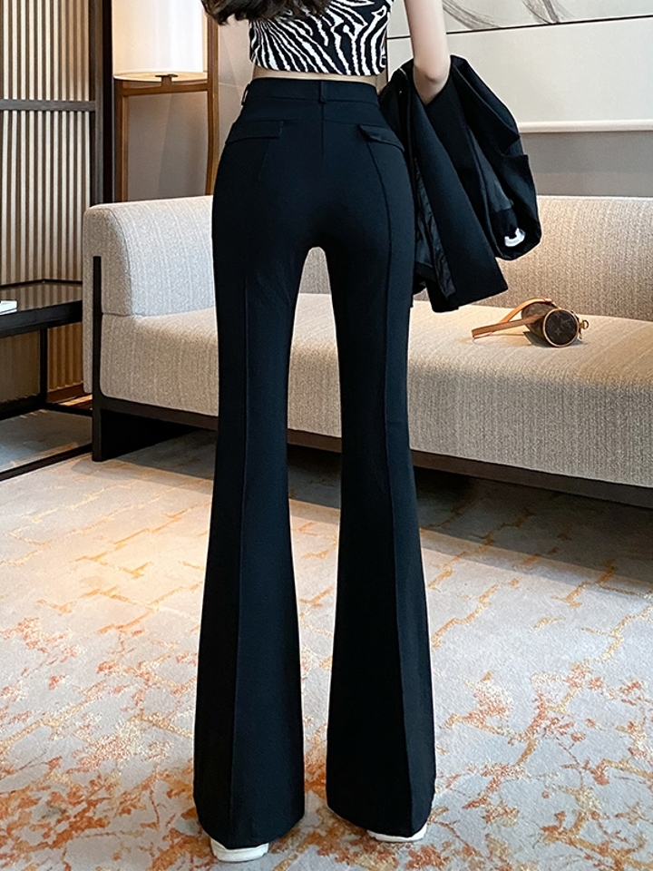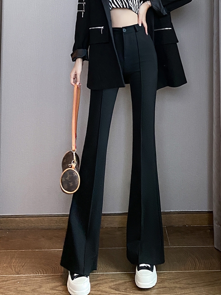 很时尚的一款喇叭裤,修身的版型,将腿部的线条修饰得十分到位。经典的黑色,显瘦效果非常好看呢!