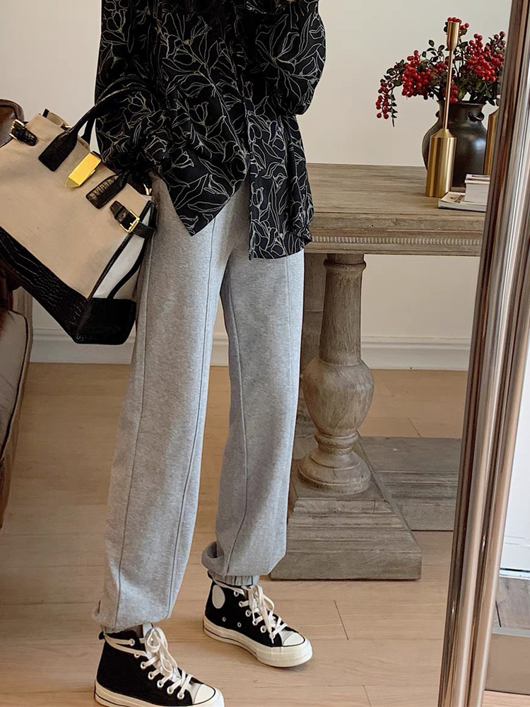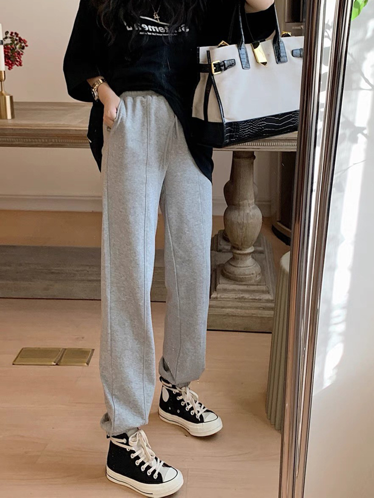 裤腰选择松紧橡筋抽绳设计,穿脱方便又舒服,侧边有口袋,休闲又慵懒~采用束脚,前片有中缝,很修腿型,看上去会很显gao挑~松紧腰锥形束脚运动裤