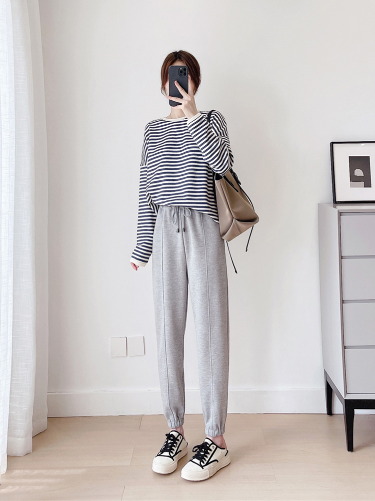 松软舒服的针织材质,碰撞上休闲运动的版,休闲的调性的多了几分慵懒感~与生俱来的韧劲,让裤子挺括有型,垂感好,无负担的感觉让人爱不释手!