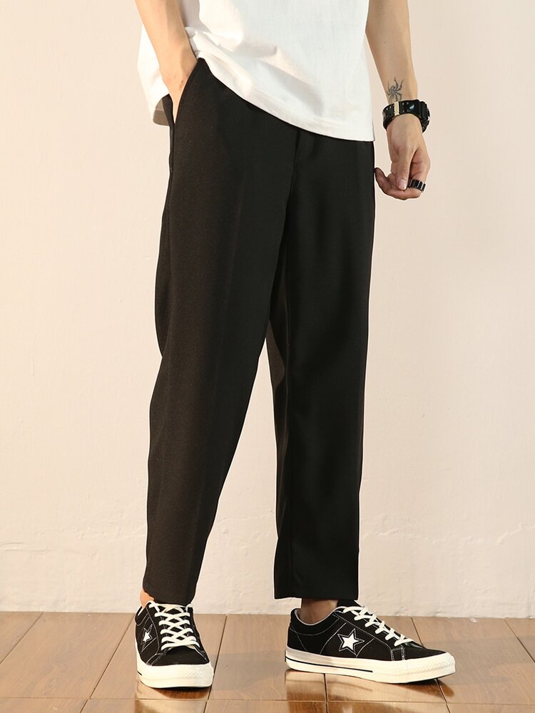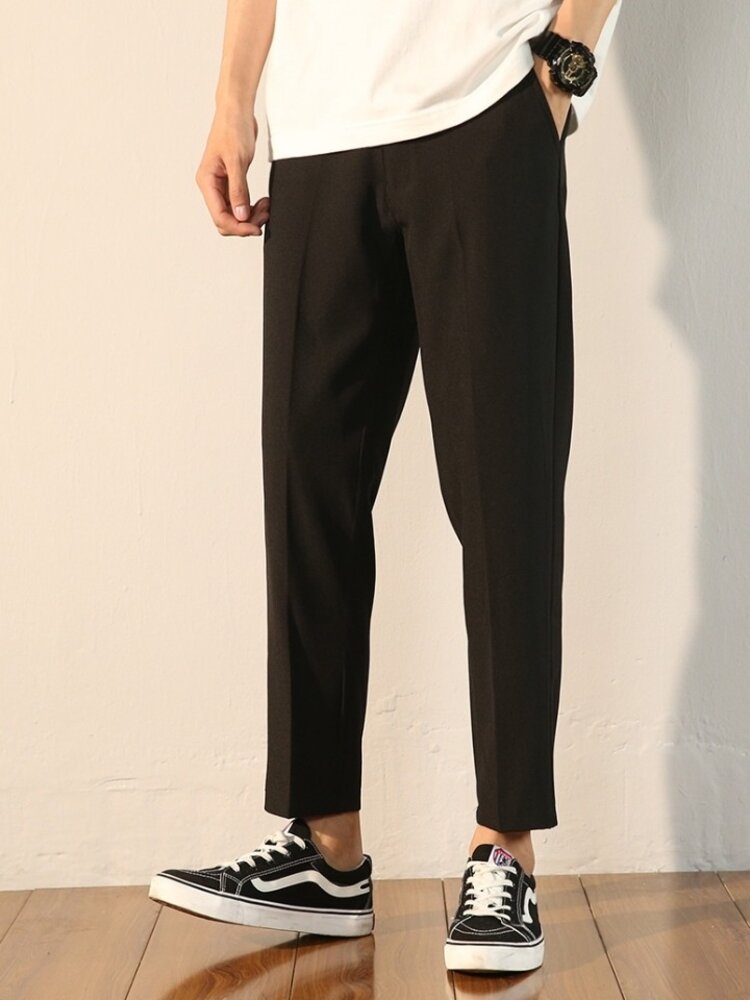 单色直筒的裤型最为简单利索,干净的裤身上没有丝毫花哨的装饰,尽显简约气质。九分裤型设计,抛弃长款裤子的拖沓感,无形中拉伸你的双腿,增高添魅力。
