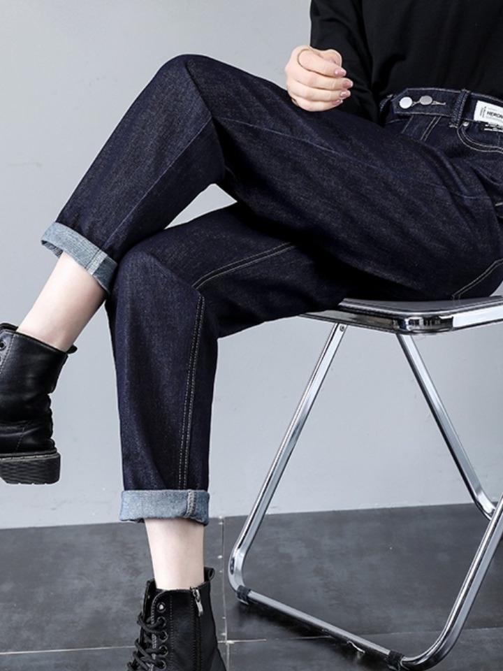 小编第一眼就喜欢上这款裤子了,这款哈伦九分收脚翻边牛仔裤款式简约无其他修饰,但上身效果给人沉稳富有内涵的感觉!无论您怎么搭配都彰显自信!