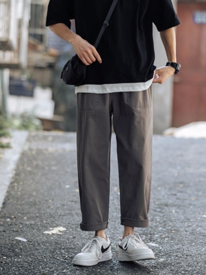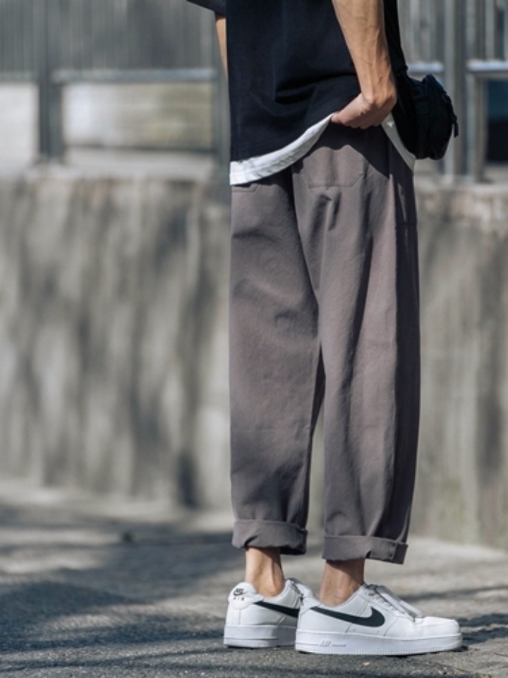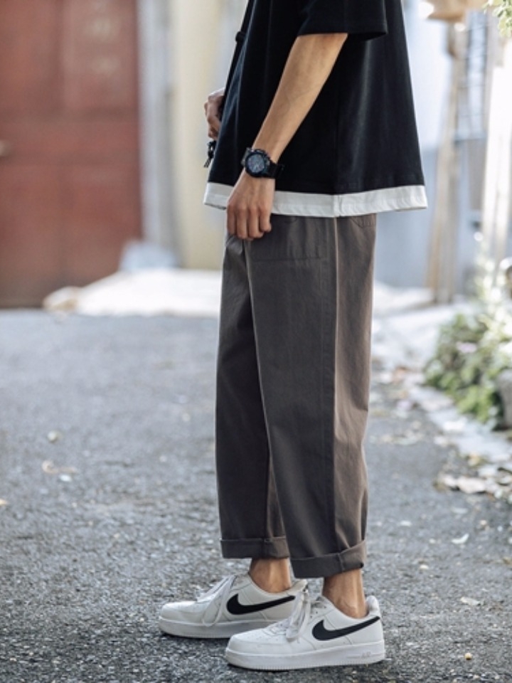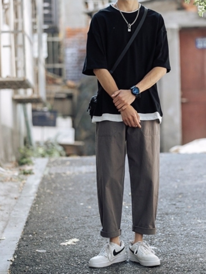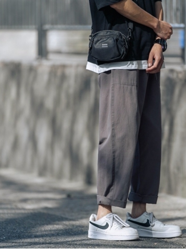 这条工装裤可以在上半身搭配一件卫衣,非常的休闲舒适,整体的风格很一致,不会有违和感,脚上可以穿一双运动鞋,洋溢出了青春感。