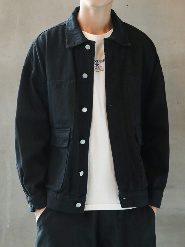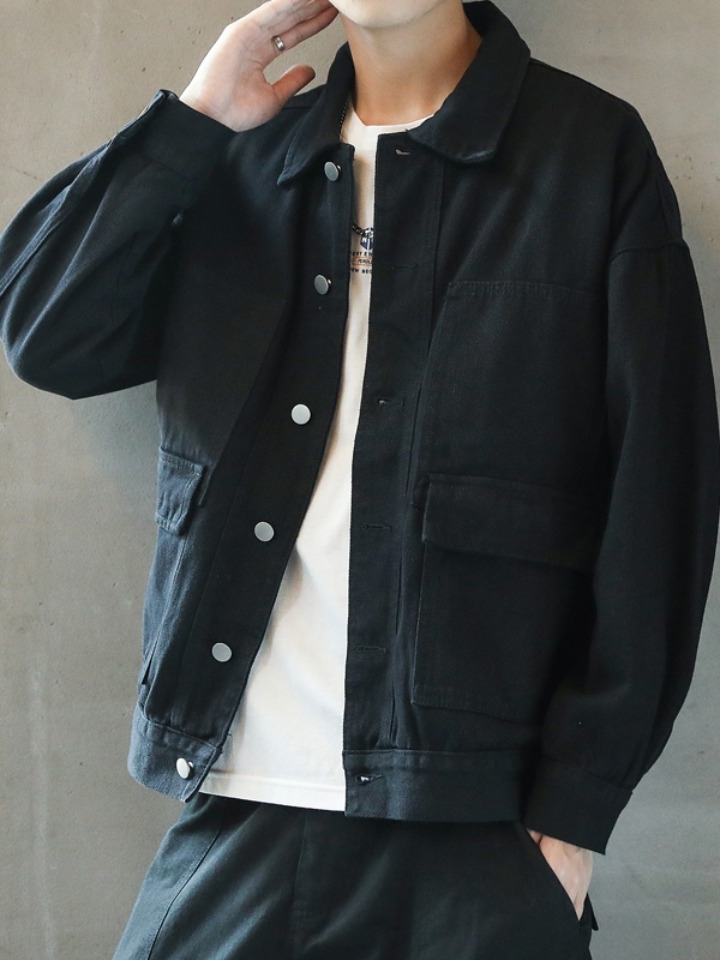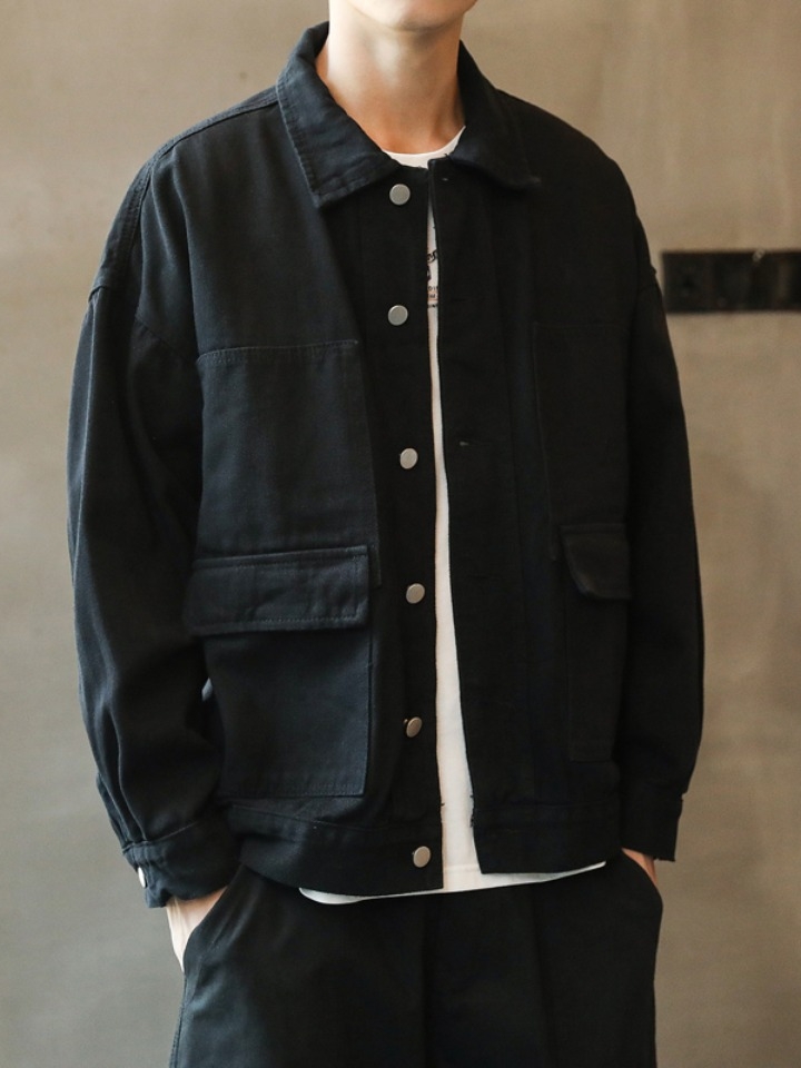非常帅气的一款夹克,上身能够很好地展现出男子的青春活力,时尚衬衫领剪裁,保暖又好看,精致的纽扣闭合门襟,彰显复古感,前身对称口袋点缀,实用又美观,带有几分撞色的车缝线彰显男子气概,上身修身显瘦,完美!