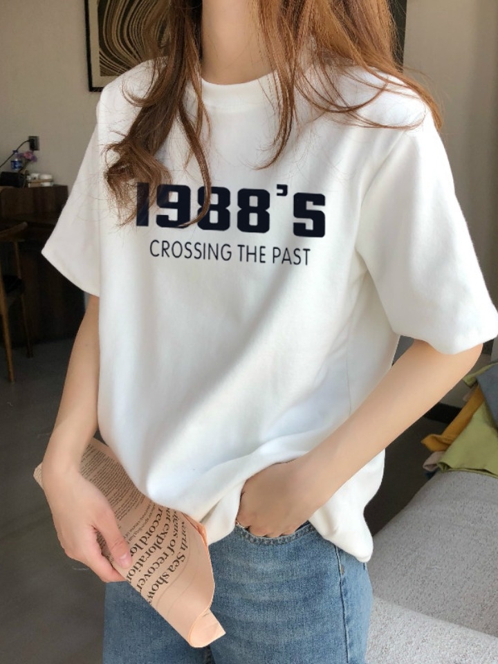 这款t恤是简约的风格,宽松的版型,时尚百搭,胸前的字母印花,很有个性,搭配牛仔裤或者短裤都很好看。