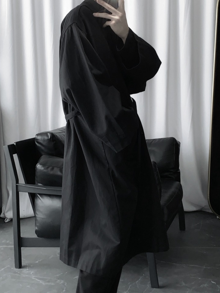 本季推出的该款暗黑风风衣,以几何的设计融入整体,很有欧美范,穿上身非常立体感和舒适,选用厚斜纹面料,腰围带有收缩绳细节可以按自己喜欢的调教,