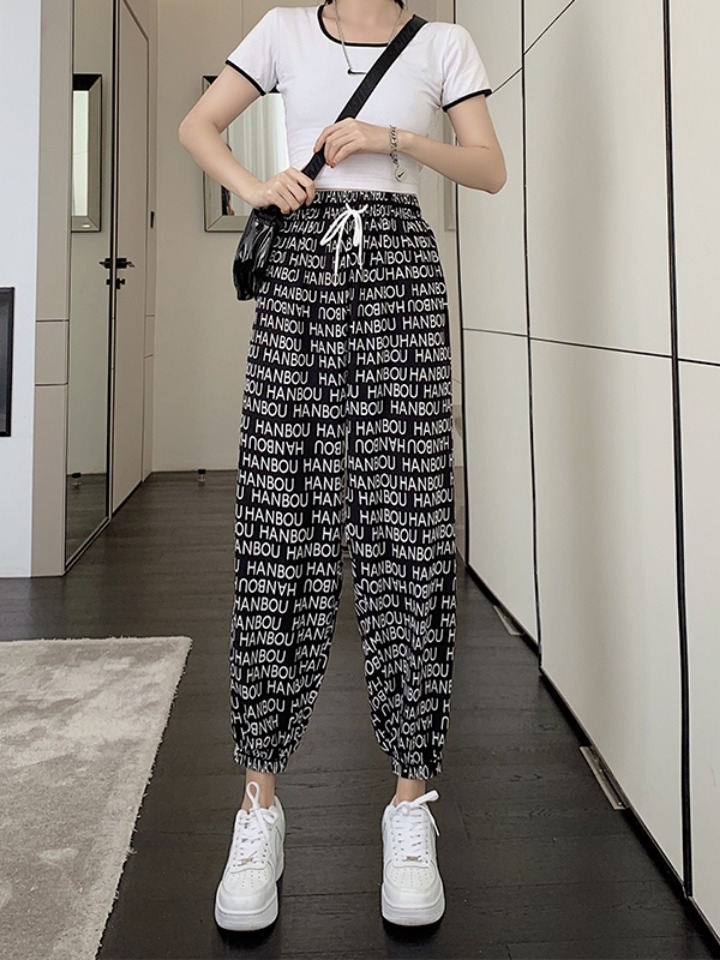 人性化的松紧腰身,穿脱方便且自在,遮住腰腹部的小赘肉。宽松版型的灯笼裤,包容不完美的腿部线条,给人简洁利落的穿着感。裤脚绑带的装饰,让纯色的裤身有个性的时尚范。