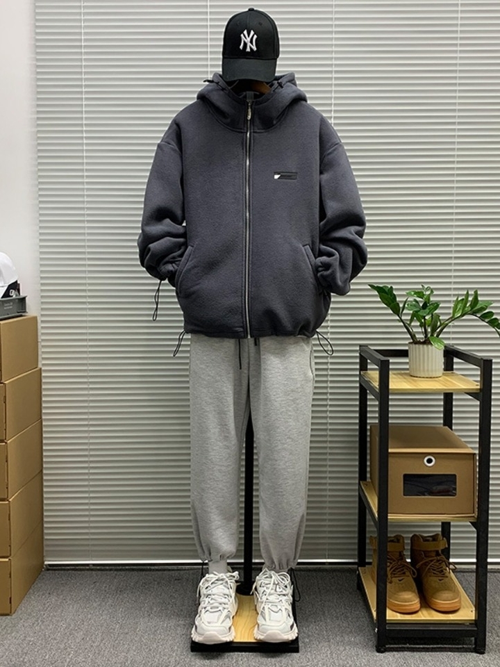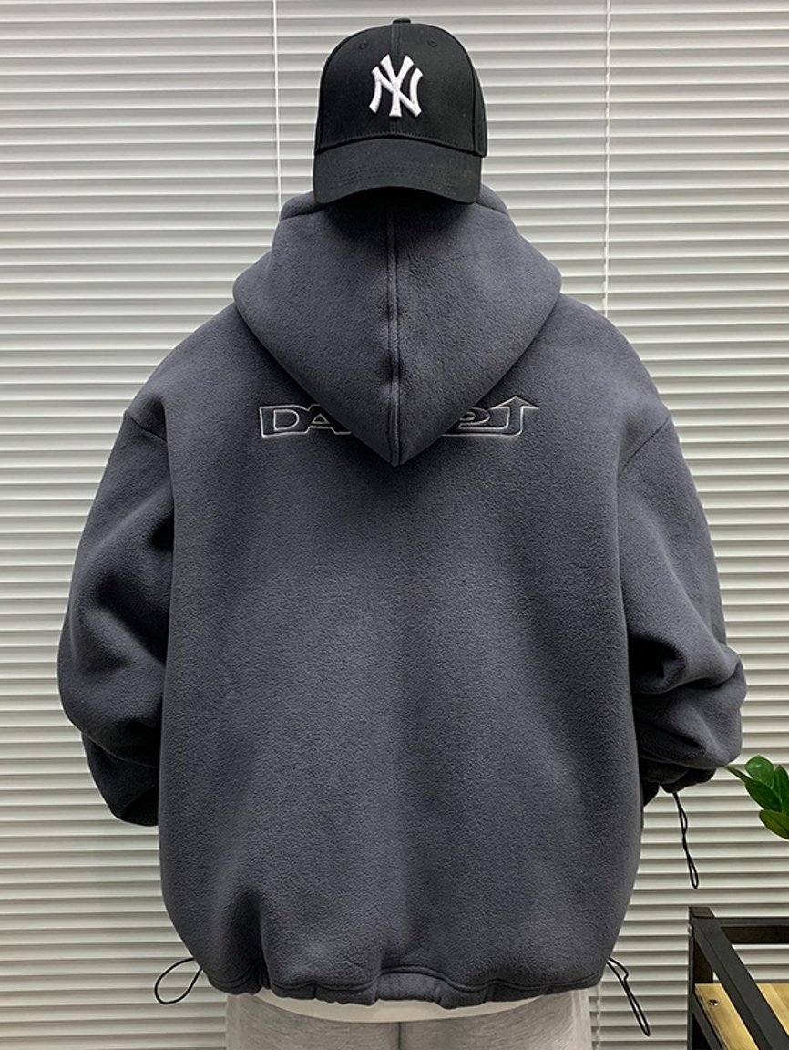 经典拉链卫衣的版型,样式简约,舒适的连帽设计,更显休闲随意,抽绳的袖口和衣下摆,富有设计感又防风保暖,背后的字母点缀增添时尚,整体简洁帅气。