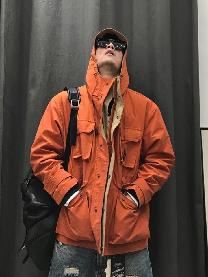 多口袋的设计搭配流畅的线条,凸显浓郁的工装风。造旧的五金,质感十足,整体透着满满的日系复古气质。