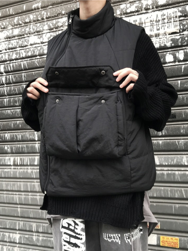 很有日系风的一款棉马甲,经典的黑色色调,时尚大气,不论怎么穿搭都不会出错,还能凸显出不羁的时髦潮男气息。
