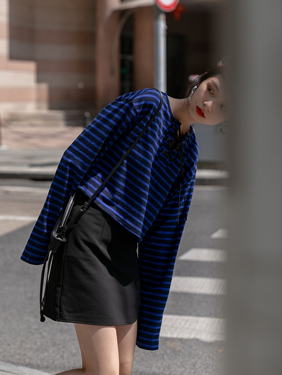 高腰的设计,拉长腿部线条,显瘦效果很好,高腰的版型,很显高挑,修身的剪裁,修饰腿部曲线,上身很有范。