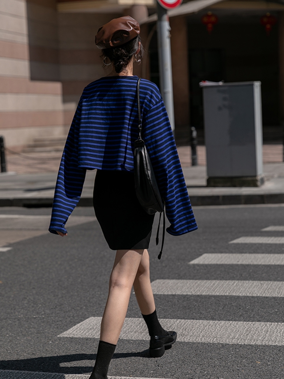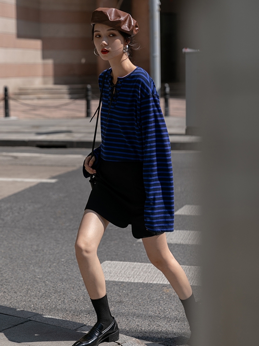 简约的高腰设计,搭配上修身的版型,上身显瘦又显高。