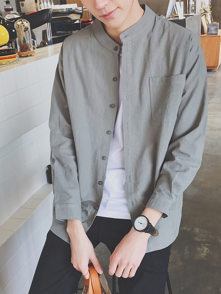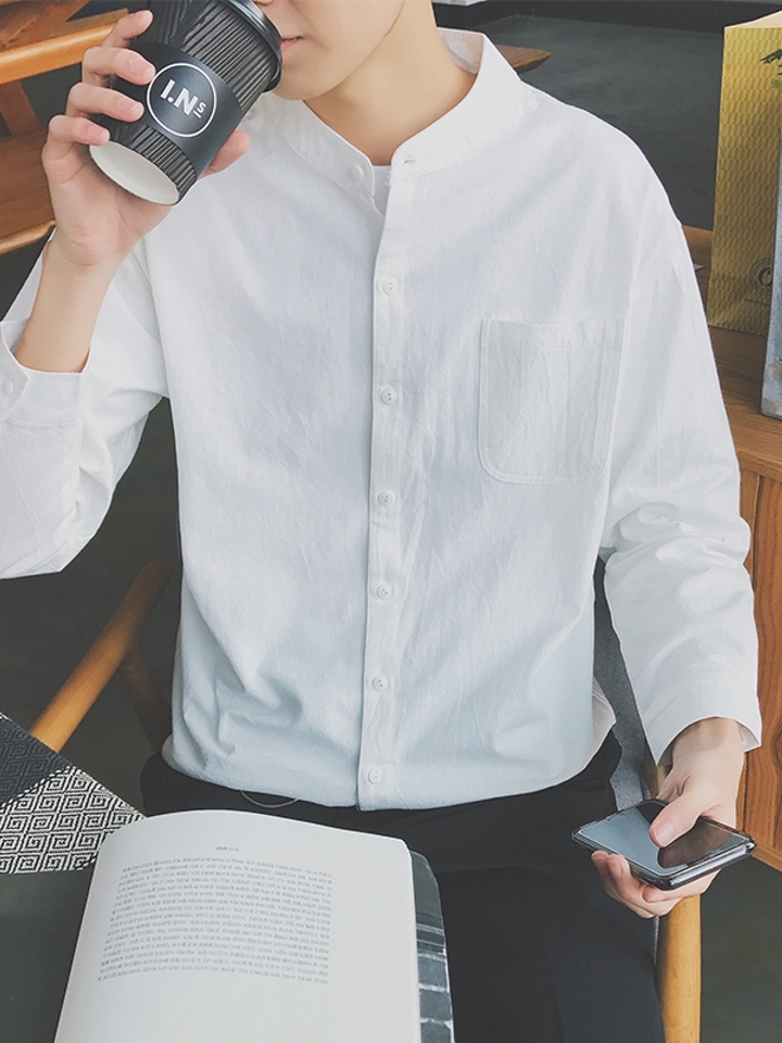 干净清新的白衬衣,凸显文艺的气质,经典的立领设计,又增添了硬朗的感觉,干净利落的剪裁,非常修身,日系风十足。有一定厚度,可以轻松应对季节变化。