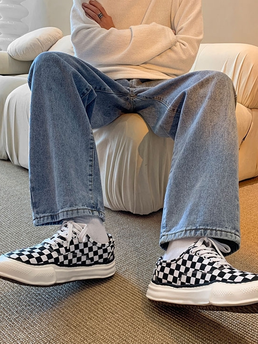 直筒阔腿宽脚设计,裤脚个性的上翻设计,增添了裤款的层次感。中腰直筒版型,对身材包容性强,尤显百搭易穿。腰间系上一根个性腰带,成为点睛之笔
