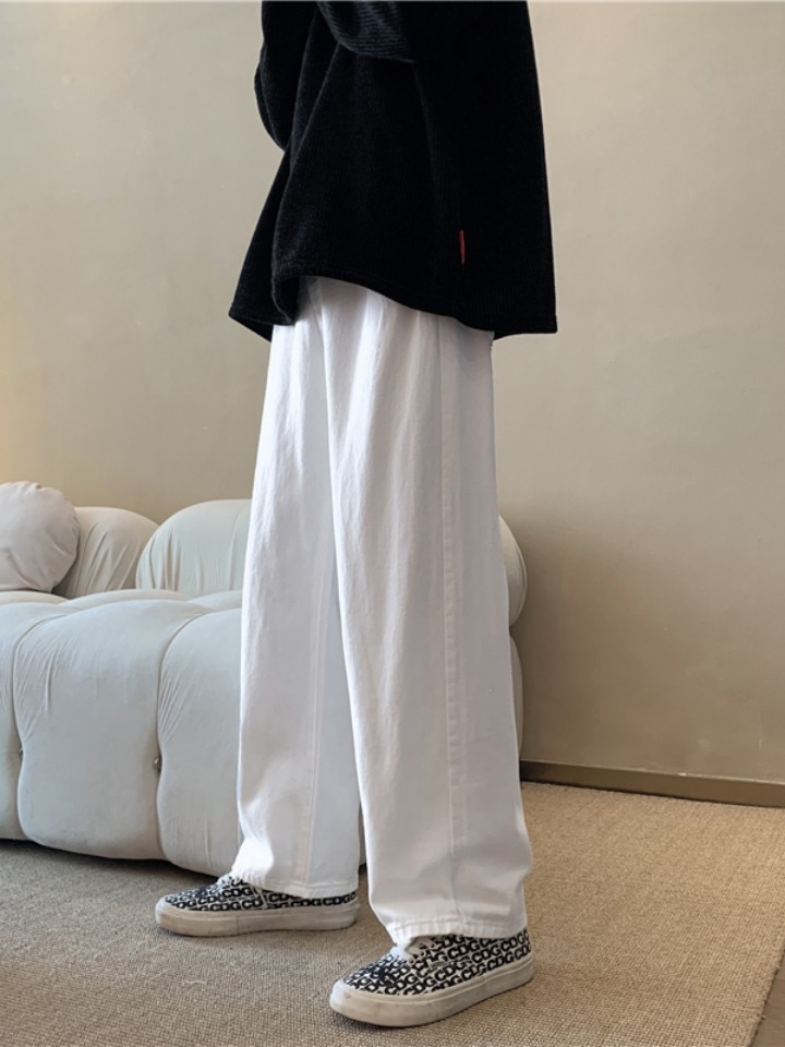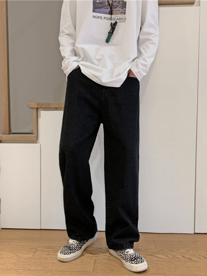 韩版直筒牛仔阔腿裤,能将腿型的缺点隐藏起来,具有修饰腿型的作用,非常显腿直,两侧的白色毛边装饰,打破了单调沉闷的感觉,使其更加耐看,更有魅力,卷边的裤腿,透着一丝随性感,令人无比喜爱。