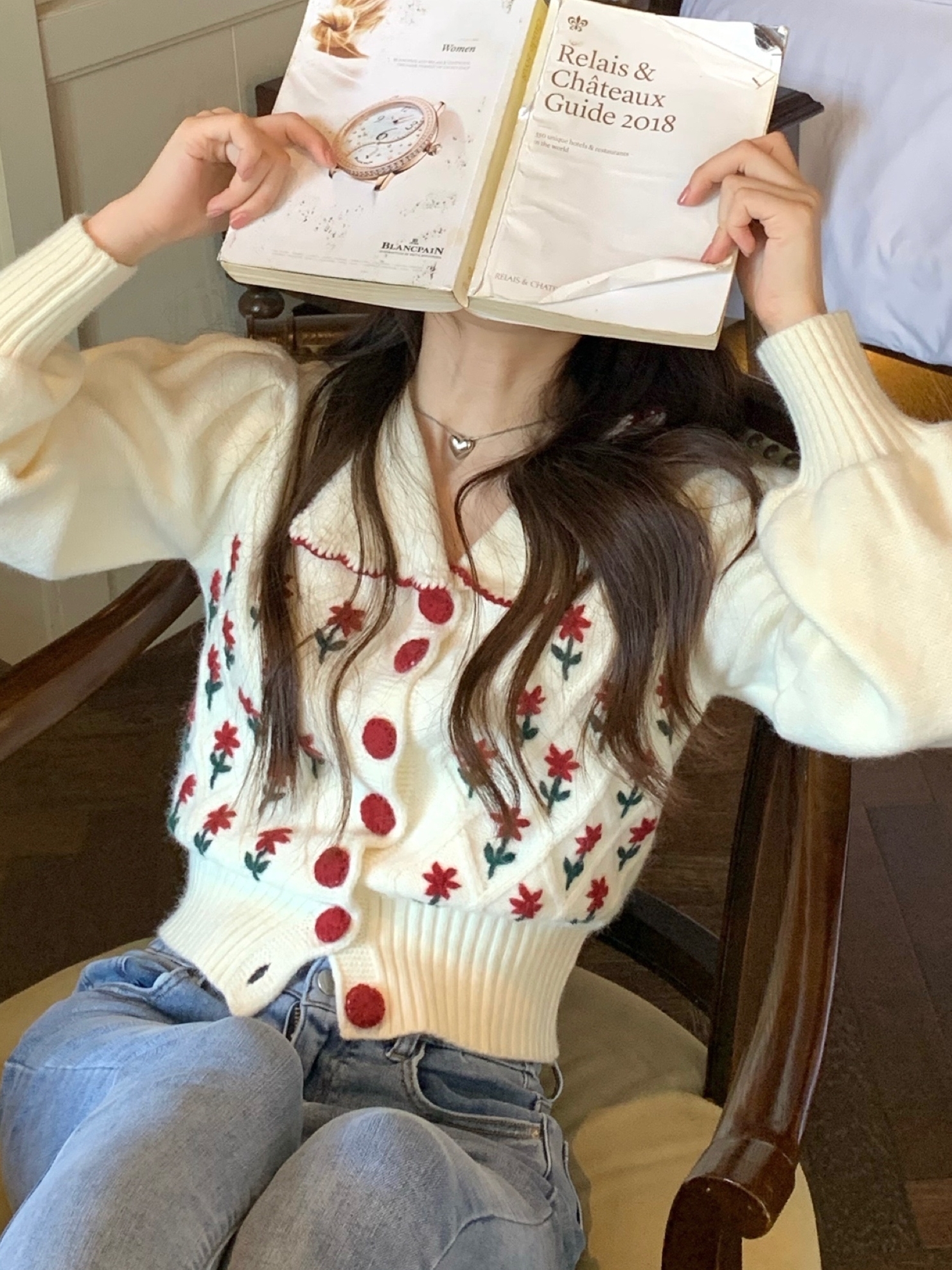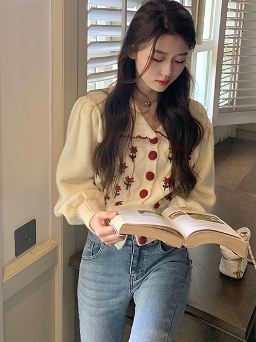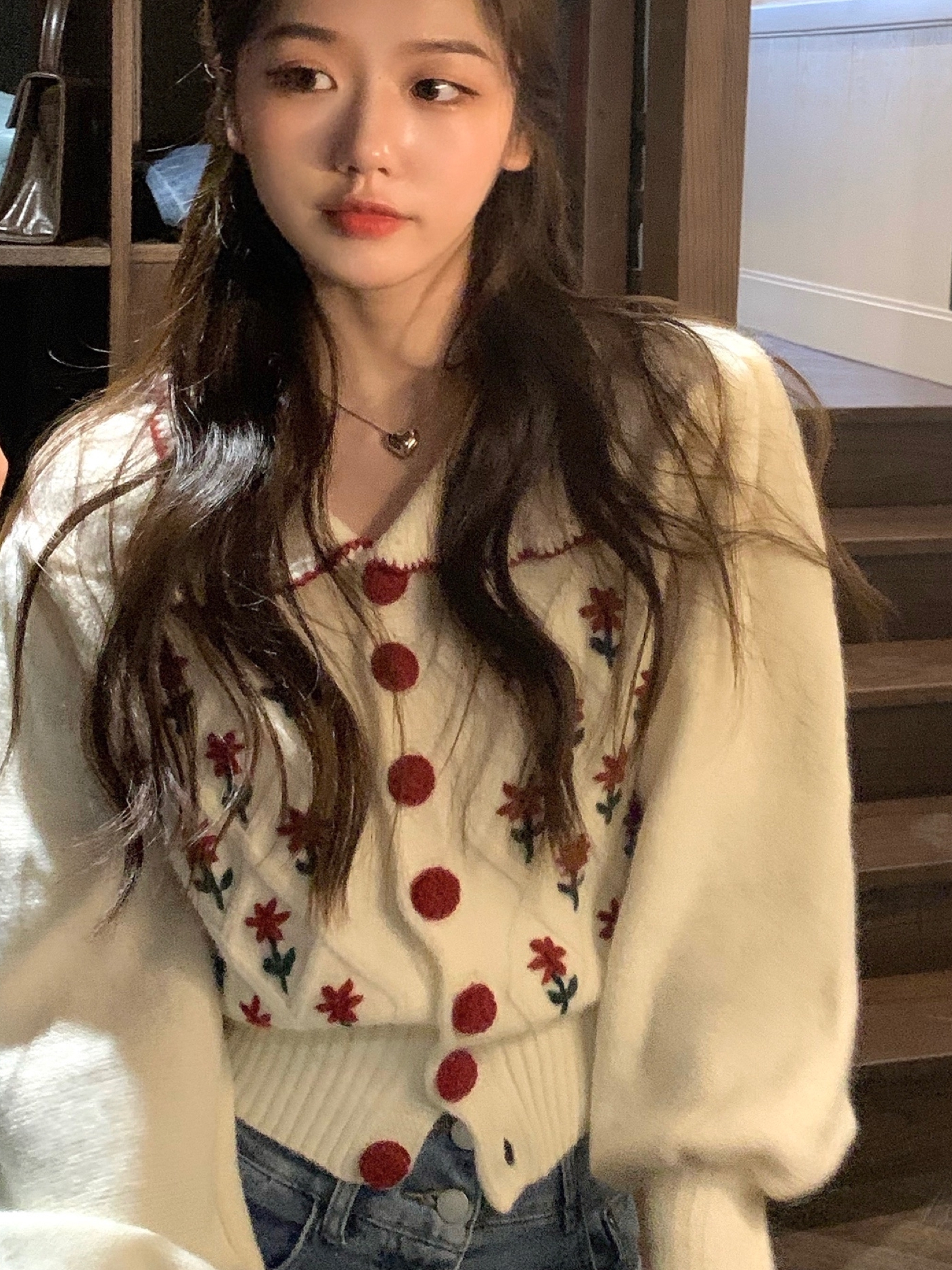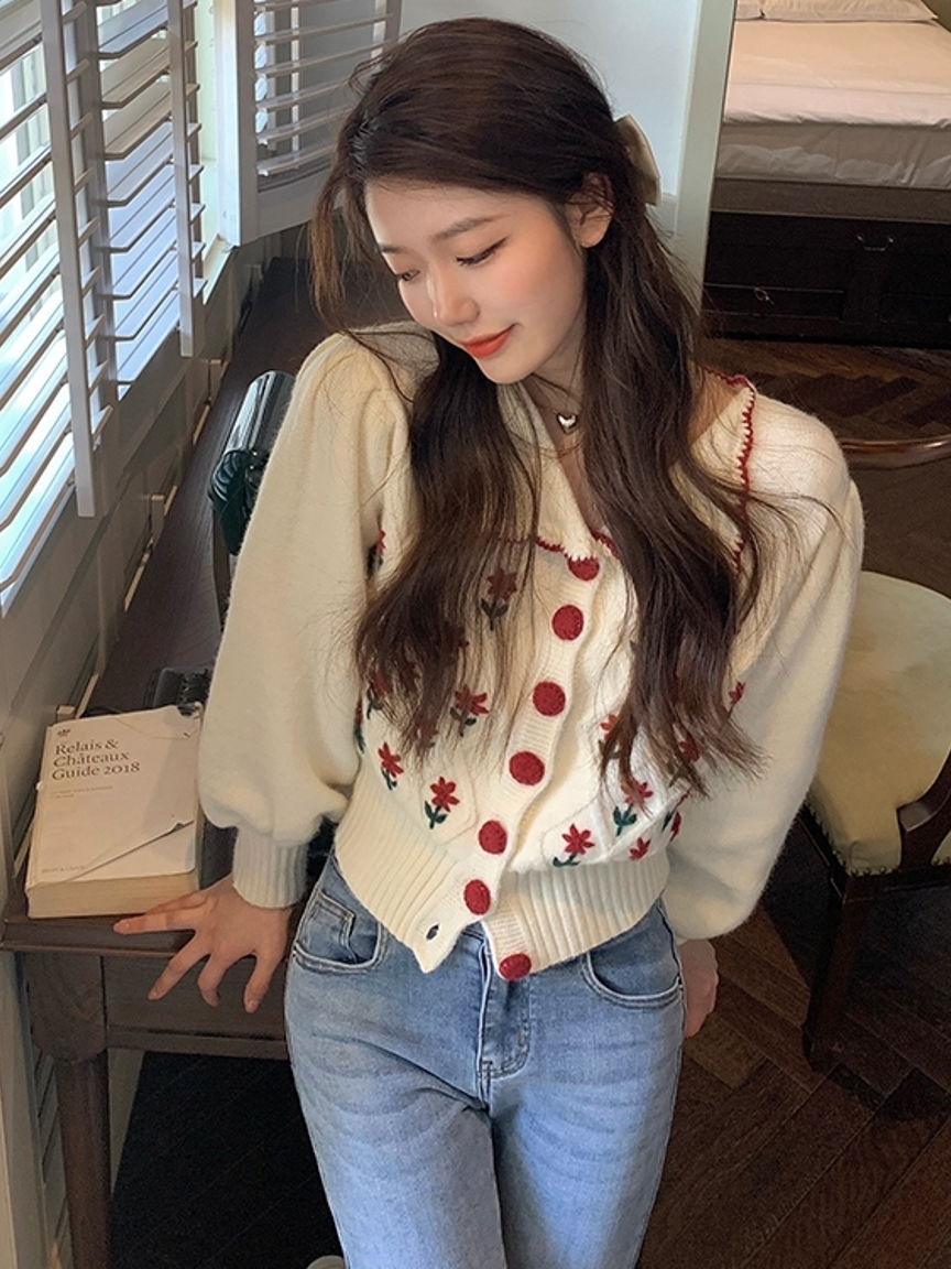 很有甜美范儿感觉的一款针织开衫,衣身是比较清新的白色系,穿在身上减龄俏皮,还会将整个人衬托的温柔无比。