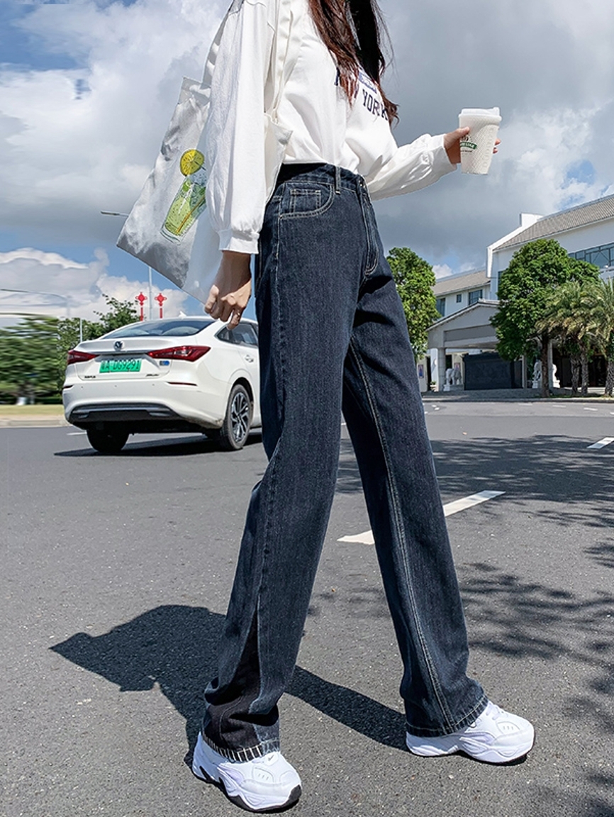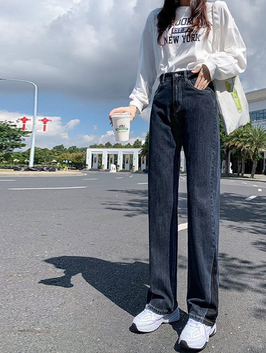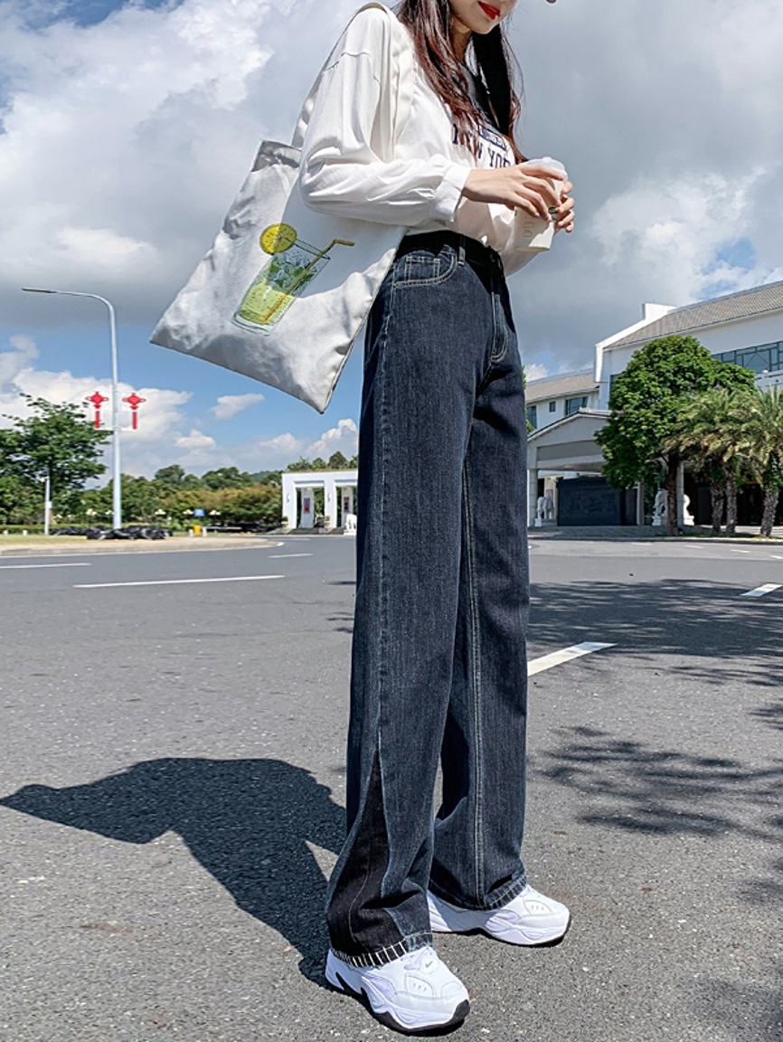 纯色的牛仔裤百搭又时尚,高腰的设计拉高腰线之余又显腿长,很好的修饰腿型,搭配任意上衣都很有街拍范儿。
