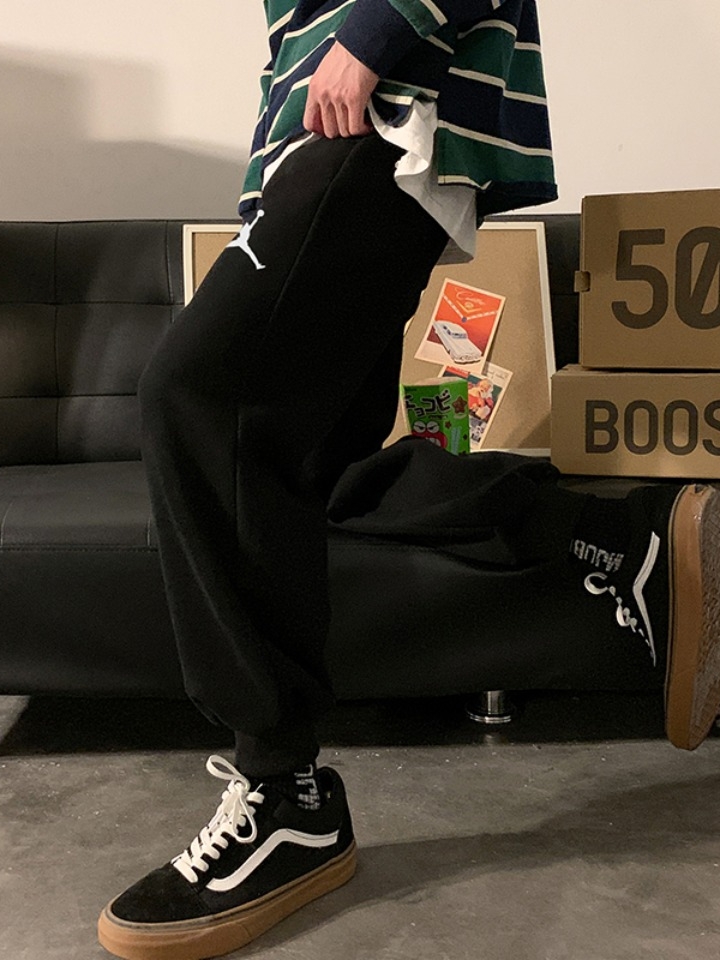 对于喜欢穿卫裤的男孩子来说,如果只是简单的将卫衣卫裤配成一套穿在身上似乎显得单调了一点,那不妨在搭配的卫衣选择上考虑印花和撞色拼接等时尚款式,既可以与卫裤的运动感保持一致,又可以在人群中脱颖而出。