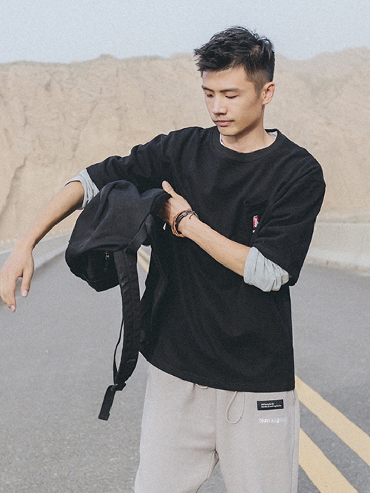 简约不失时尚感的一款休闲卫衣,胸前幽默的字母印花,带来青春活力感也很休闲随性。下摆处将不同材质的面料巧妙接拼,营造层次穿搭,率性十足。