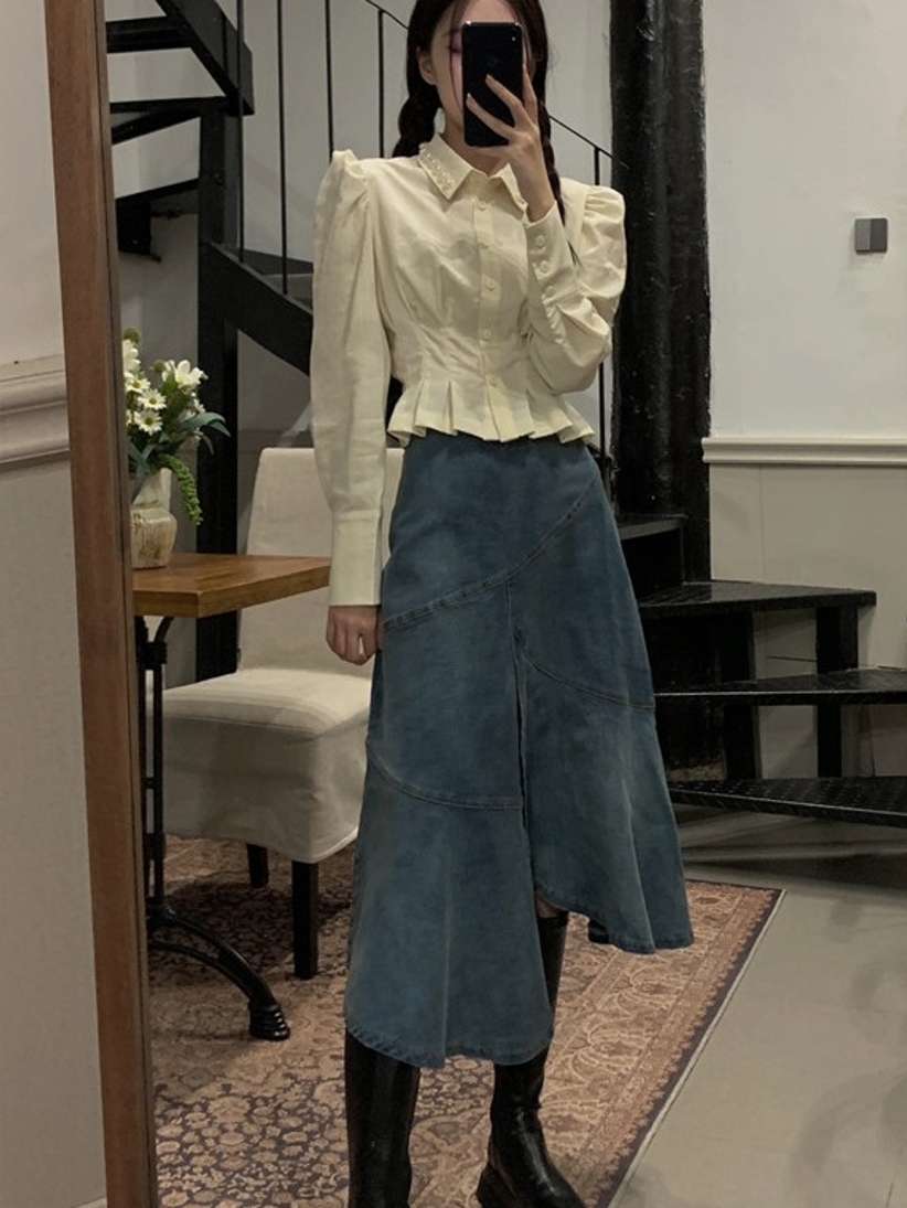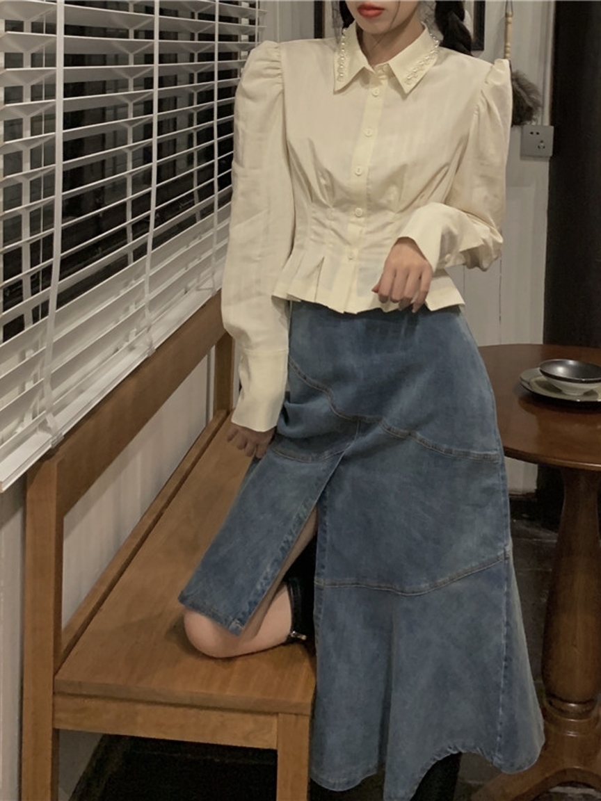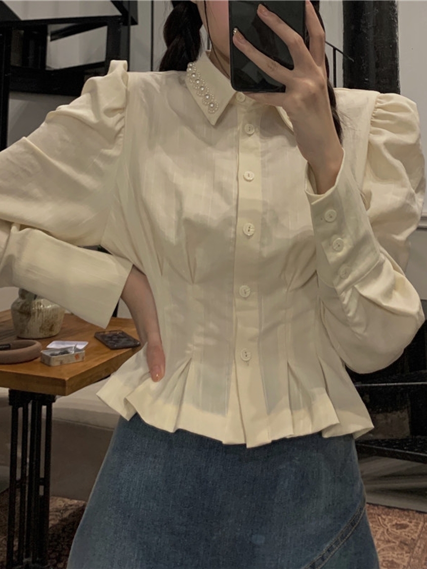 很适合小个子穿搭的一款衬衫,衣身选用了比较典雅的白色系结合上小香的风格,为整体平添几分典雅气息。