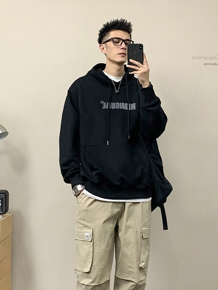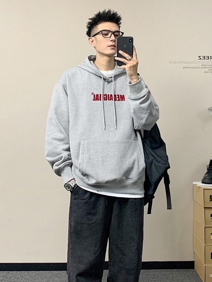 连帽套头式的休闲设计,增加几分青春活力,衣身以灰色为色调,袖子上的织带装饰,增强立体感,侧面的开叉潮流范十足。