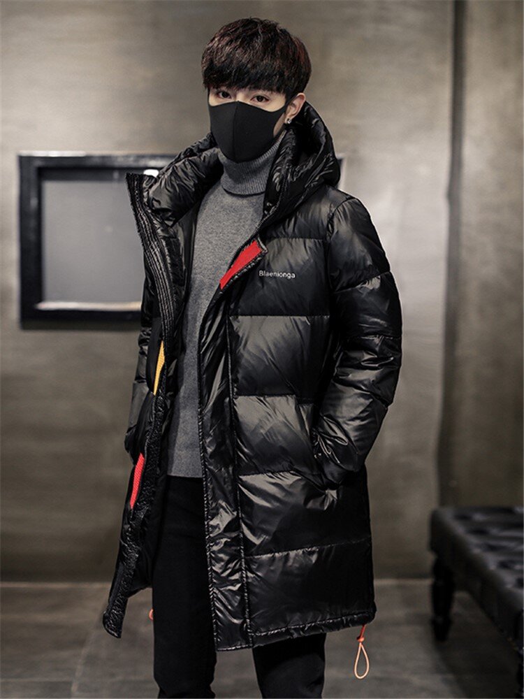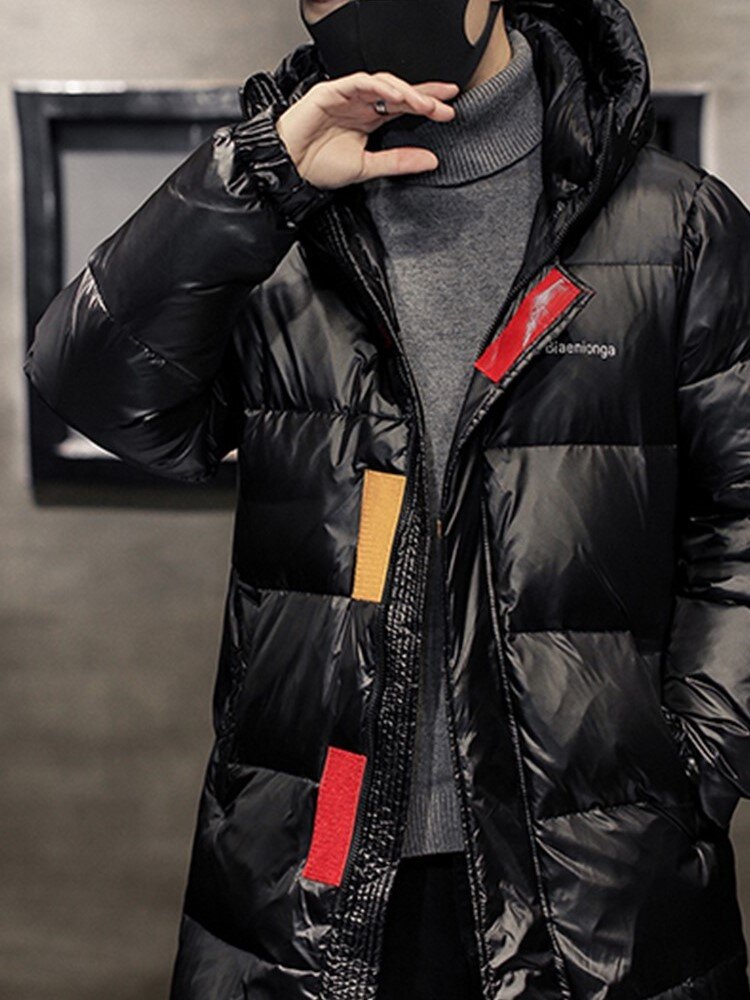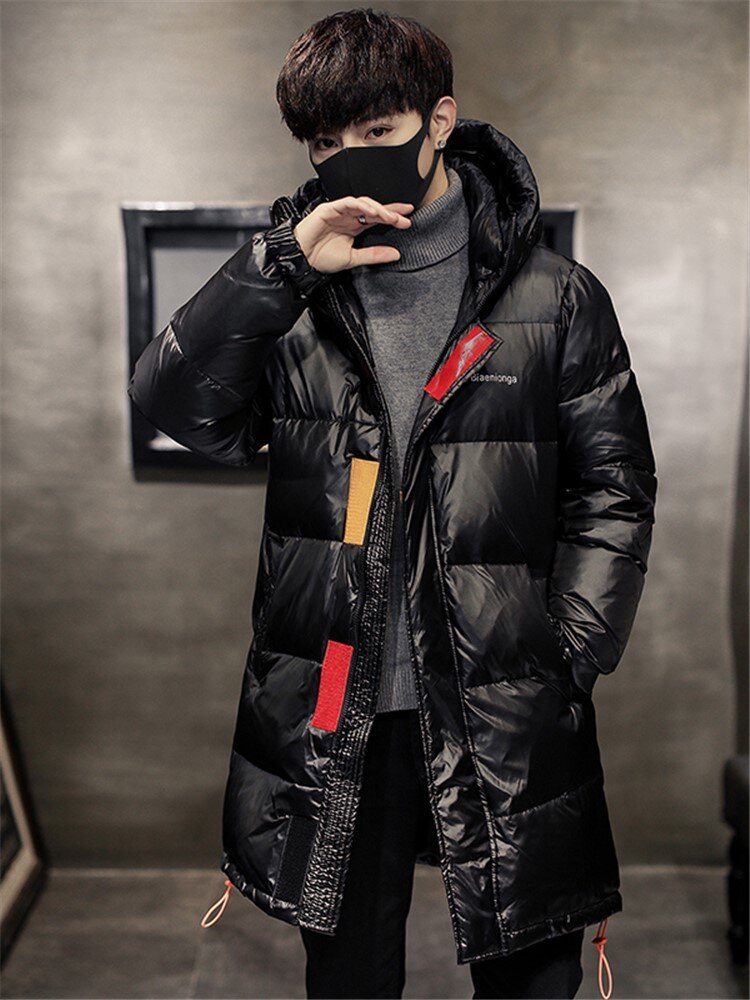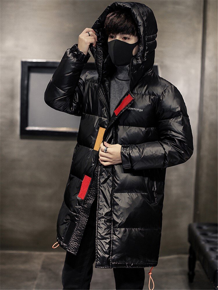 连帽外套设计,防风保暖,中长款羽绒服,保暖舒适。