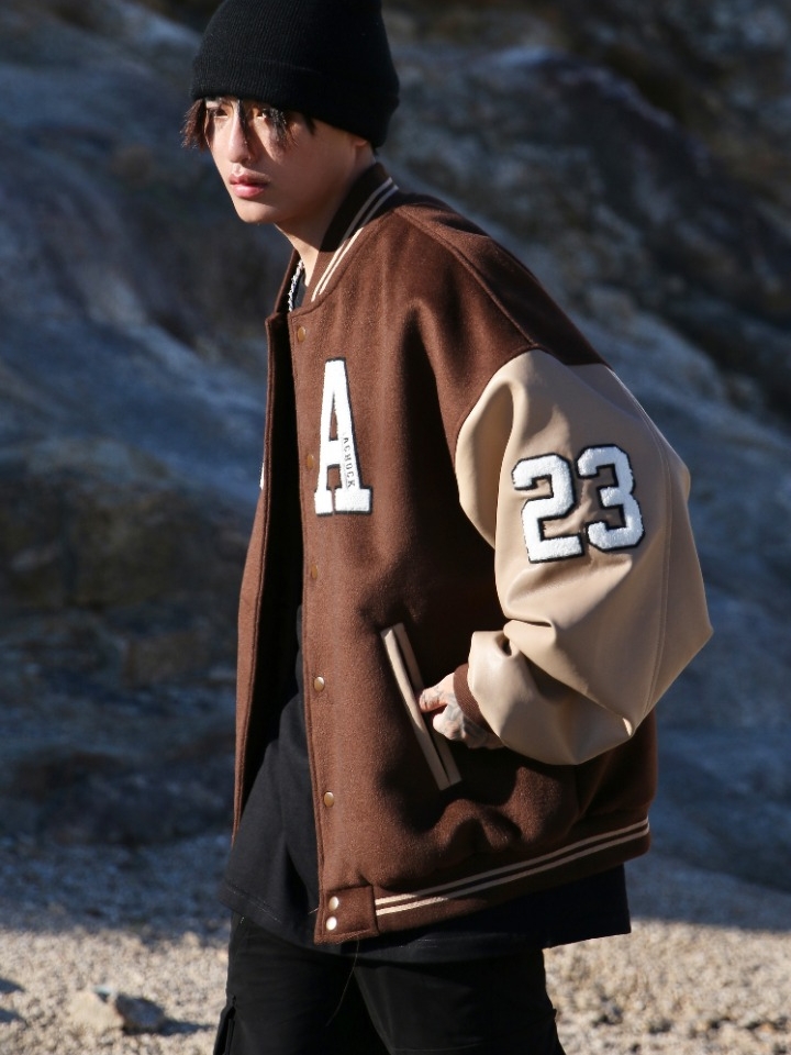一款别具一格的棒球夹克时尚又帅气,经典的版型,色彩鲜明的撞色,透出满满的活力,搭配胸口袖间的刺绣印花,带来不一样的青春时尚气息。