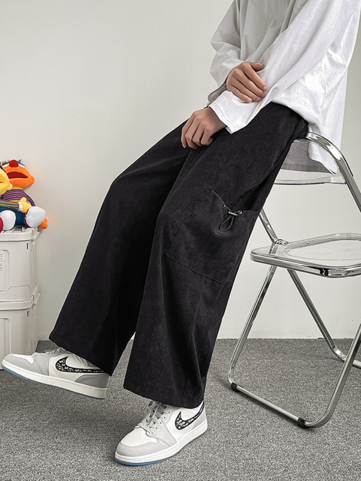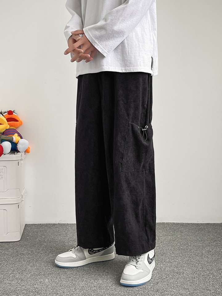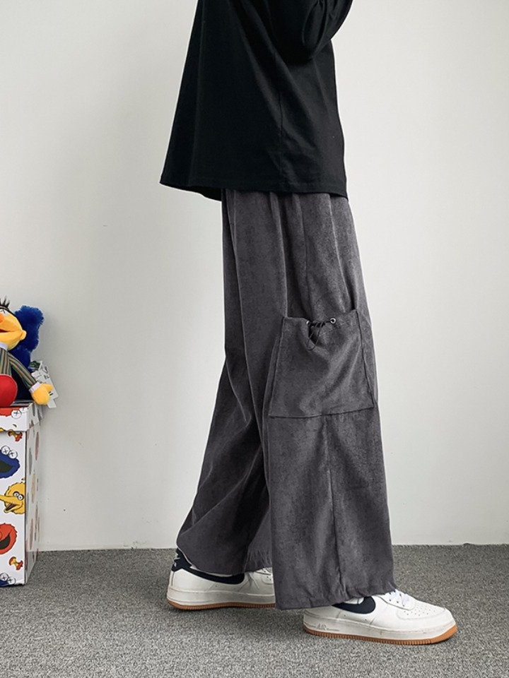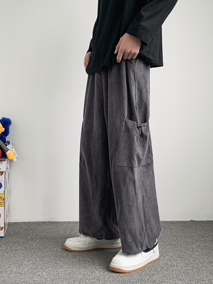 日系街头嘻哈宽松水洗直筒工装裤,常规的牛仔面料经过水洗等工艺,凸显质感与复古风格。简约的线条搭配大口袋,走线平整做工精细。挽起裤脚搭配帆布鞋,呈现日系复古的气质。