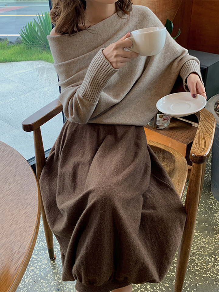 一字肩的小心机一点点性感,展示出你性感的锁骨,性感迷人不失慵懒气质。