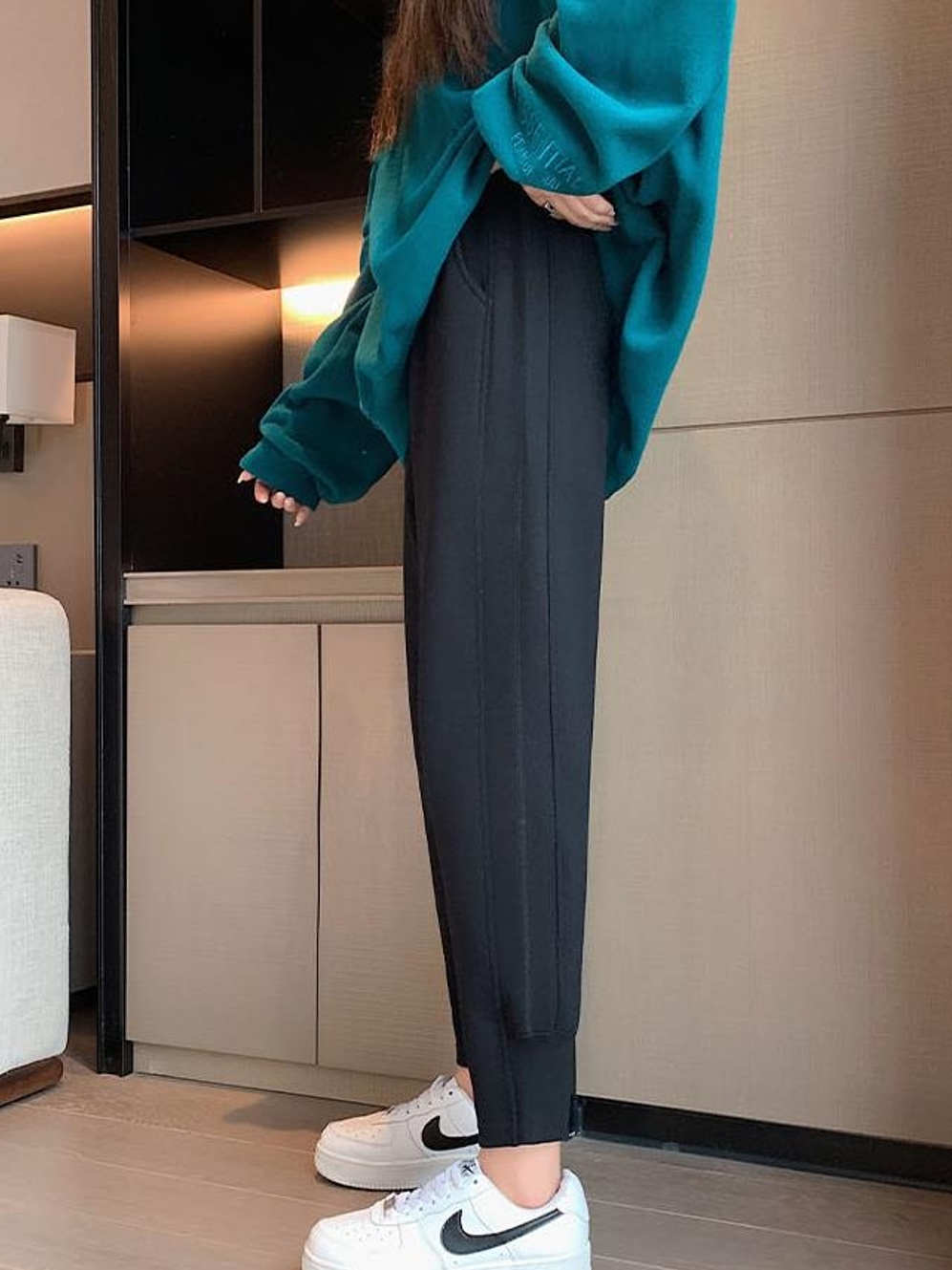 这款裤子是纯色设计,款式简约大方,日常非常百搭,想要穿出休闲减龄的效果,只要搭配一件宽松的卫衣和一双小白鞋就可以了。