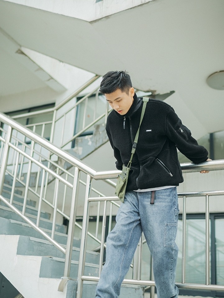 厚实温暖的羊羔绒衣身,质感轻巧,暖意满满,宽松有型,富有休闲范儿,结合洋气的黑色格调,更加彰显男孩内敛沉稳的气质。