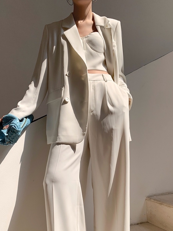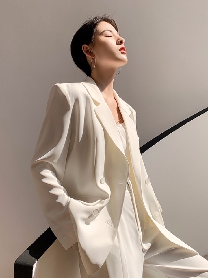 高腰的设计,拉长腿部线条,显瘦效果很好,高腰的版型,很显高挑,修身的剪裁,修饰腿部曲线,上身很有范。