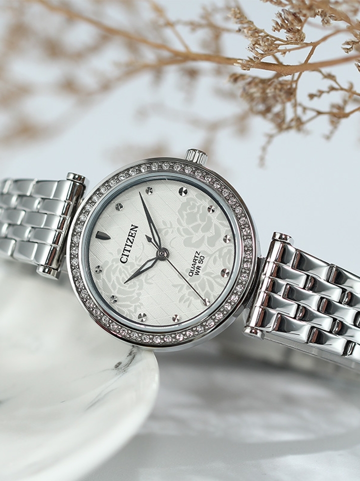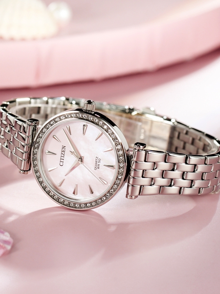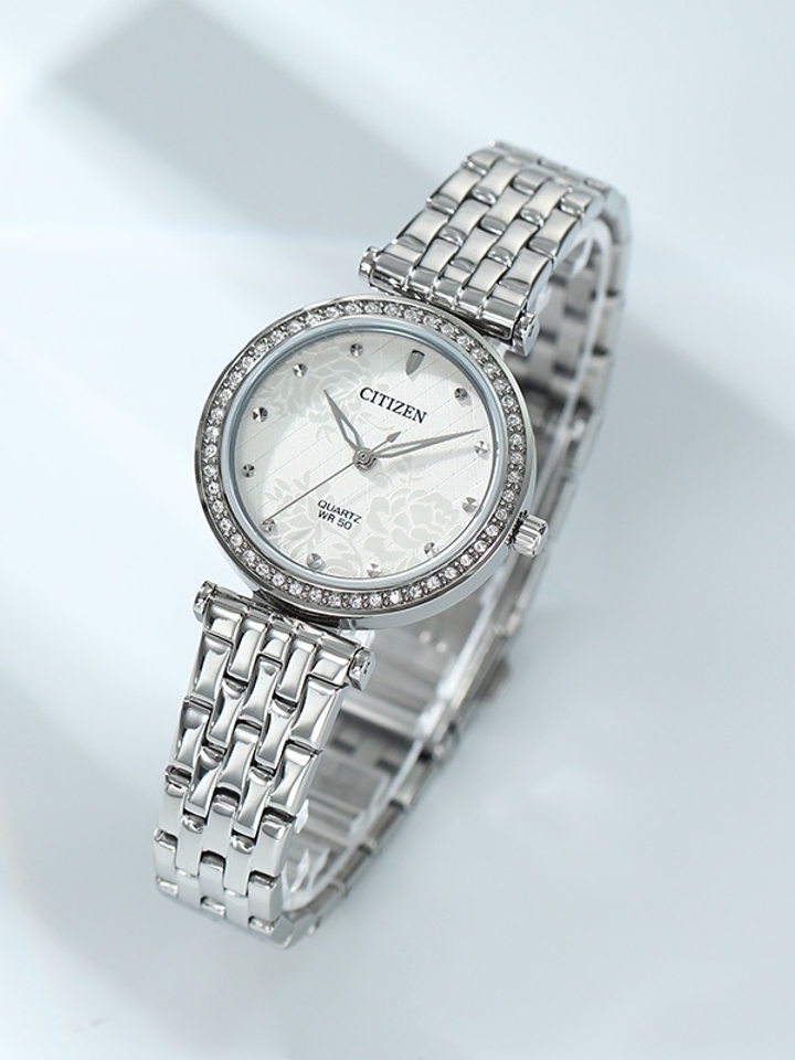 采用经典的石英表设计,带有时尚的气息,简约大气的表盘,精致的镂空设计充满了优雅的气质,水晶般的质感带有晶莹剔透的光泽质地,整体风格彰显时尚品味。