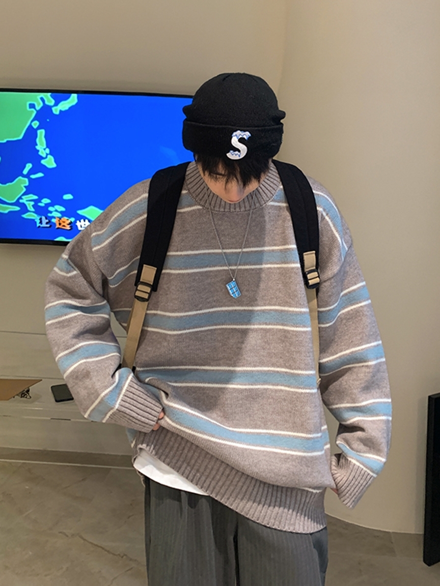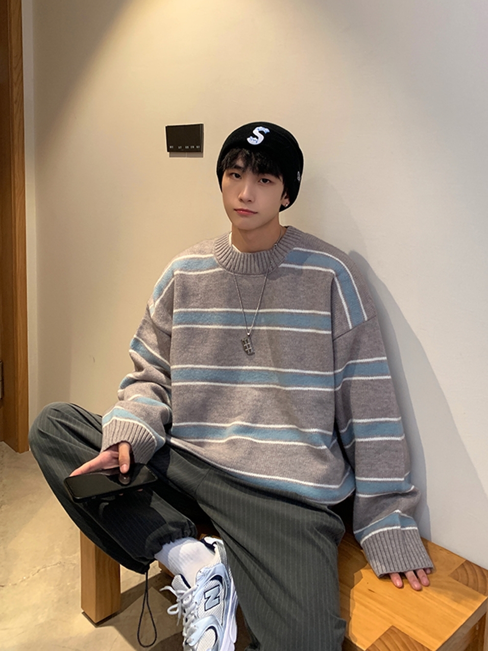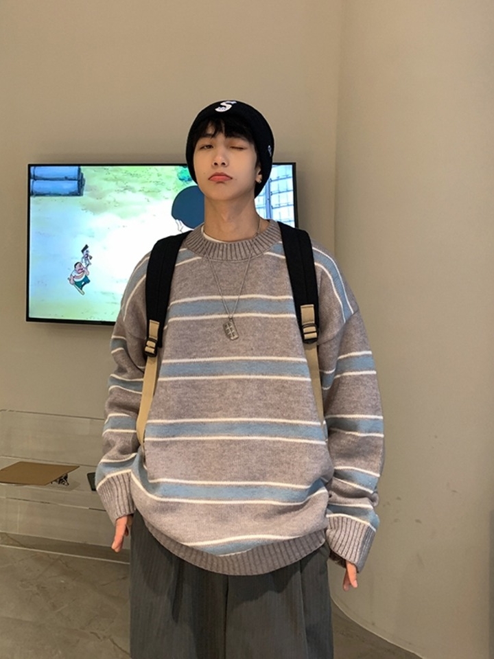 条纹毛衣可以说是非常经典的时尚单品了,今年也很流行,这款圆领毛衣款式简约百搭,上身可以轻松穿出休闲韩范的气质。