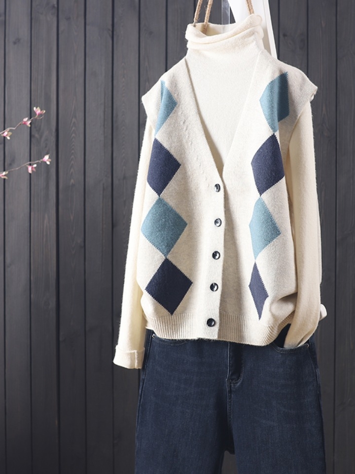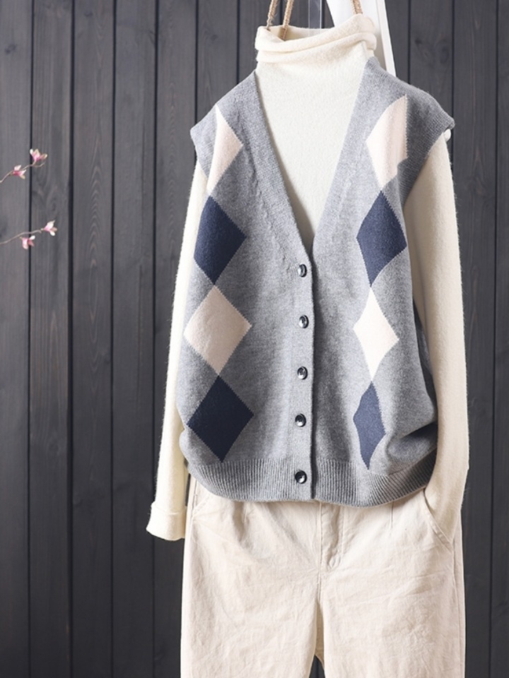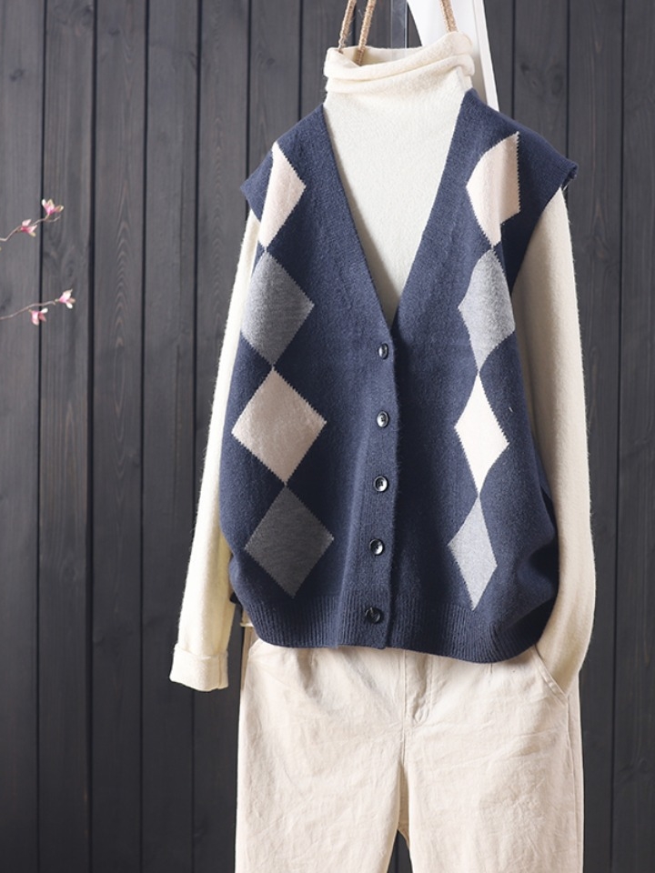 很文艺的一款针织马甲,款式简约却很美观,融入了时下很流行的撞色元素,使衣服更具吸引力,随意搭配都很好看。