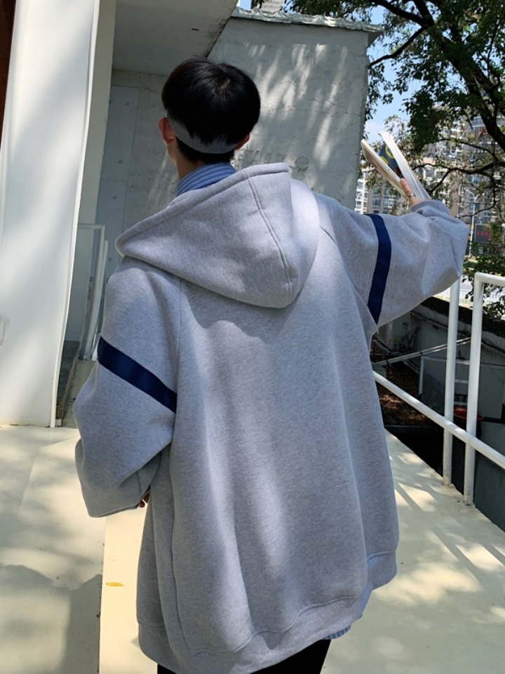 这是一款欧美风格的卫衣,没有过多繁杂的装饰,却独有一份个性。前身独特字母拼接设计,给予强烈的视觉冲击效果。内搭选择一件衬衫,下身再搭配一条休闲裤,成熟稳重的型男魅力瞬间呈现!