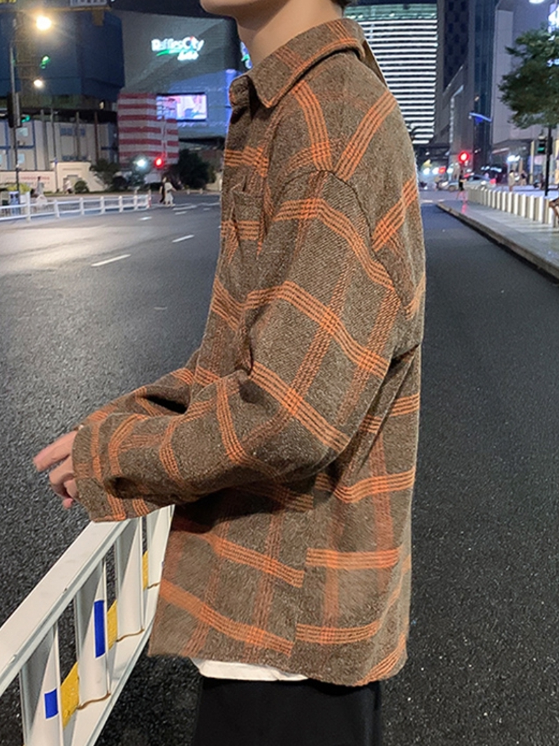 置物方便的格子衬衣,其尖领的样式设计可以给人优雅稳重的视觉感受。下穿一直筒工装裤,对各种身材都很包容,不挑人,此外可修饰腿型。