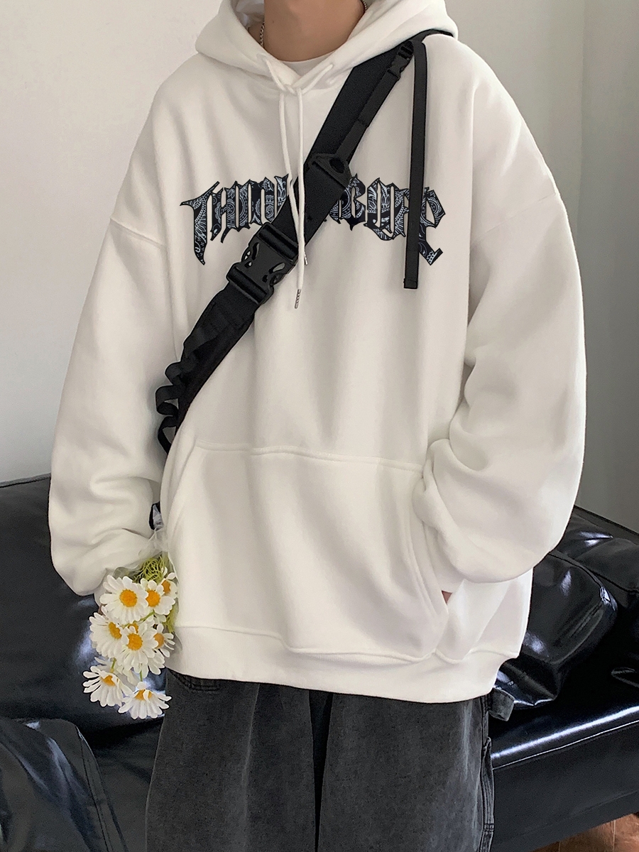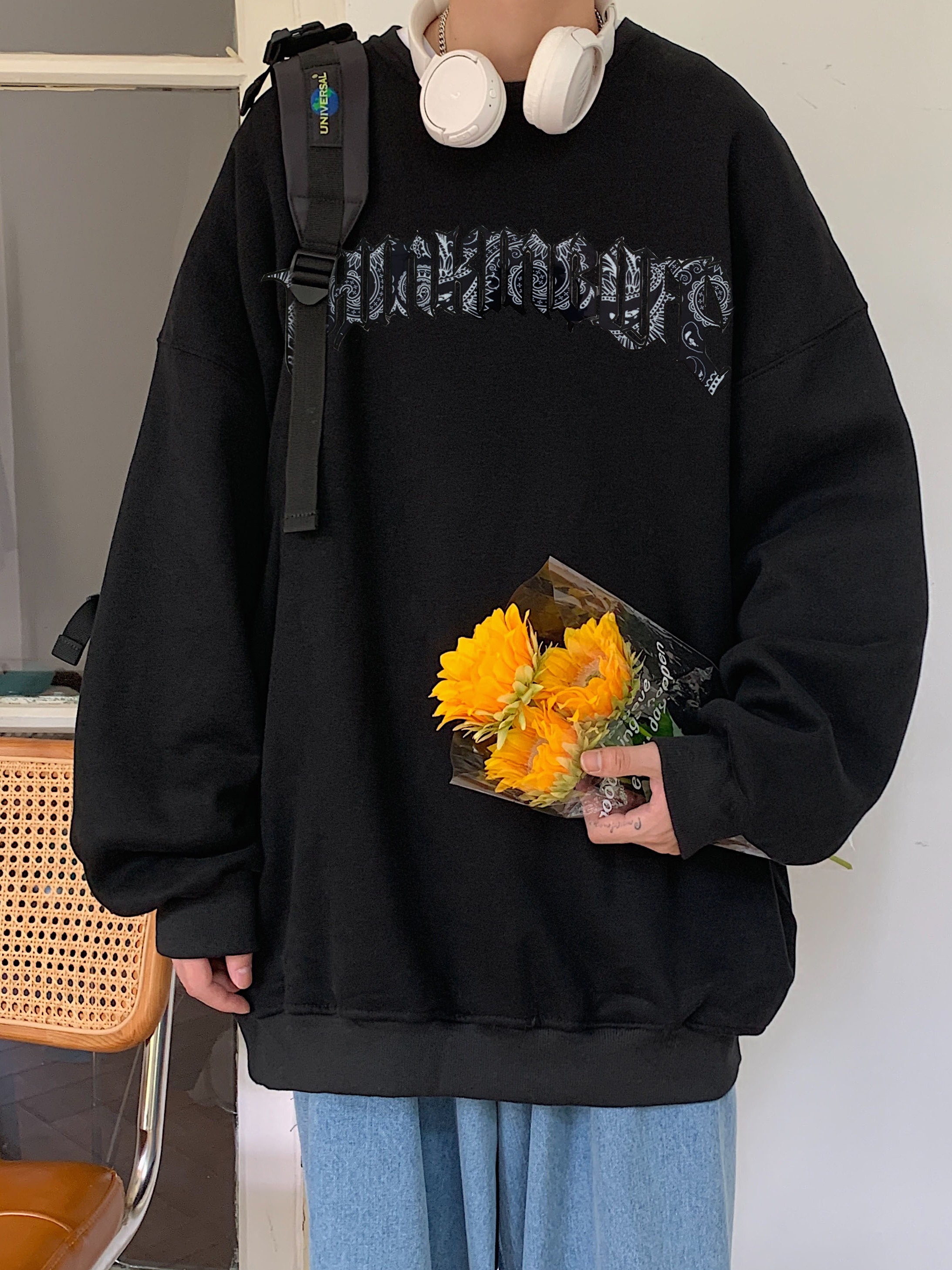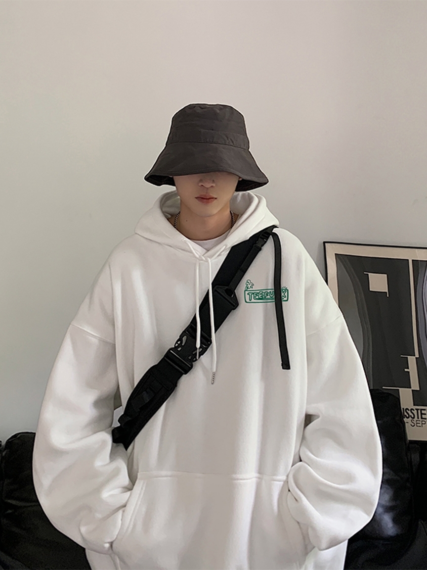一款慵懒风的卫衣,oversize的版型,穿着十分的舒适不会有拘束感,落肩袖的设计,对身材具有很强的包容性。