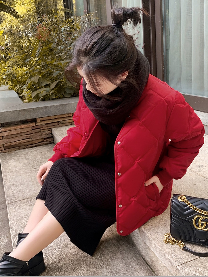 宽松短款羽绒服,时尚百搭的款式,圆领的设计显的优雅,凸显颈部迷人曲线,宽松的版型,遮肉显瘦。