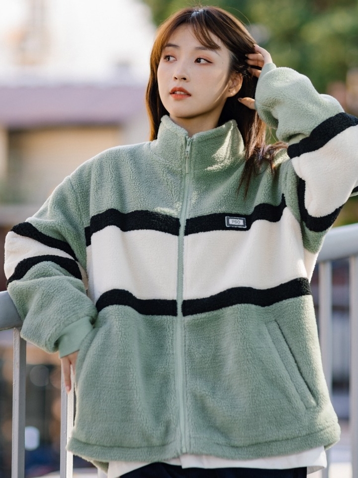 厚重羊羔毛拼接夹克,无论多么成熟的造型,有了它暖心程度瞬间升温,加上羊羔绒的点缀,整体非常吸睛,更添一份温暖可爱~