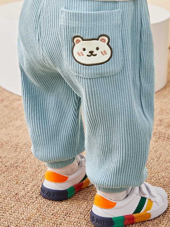 精选优质牛仔面料,舒适透气,贴合肌肤;松紧裤腰,弹力适度,裤脚做工细致,走线均匀,宝宝穿着舒适方便;斜插口袋,方便实用,腿部补丁设计