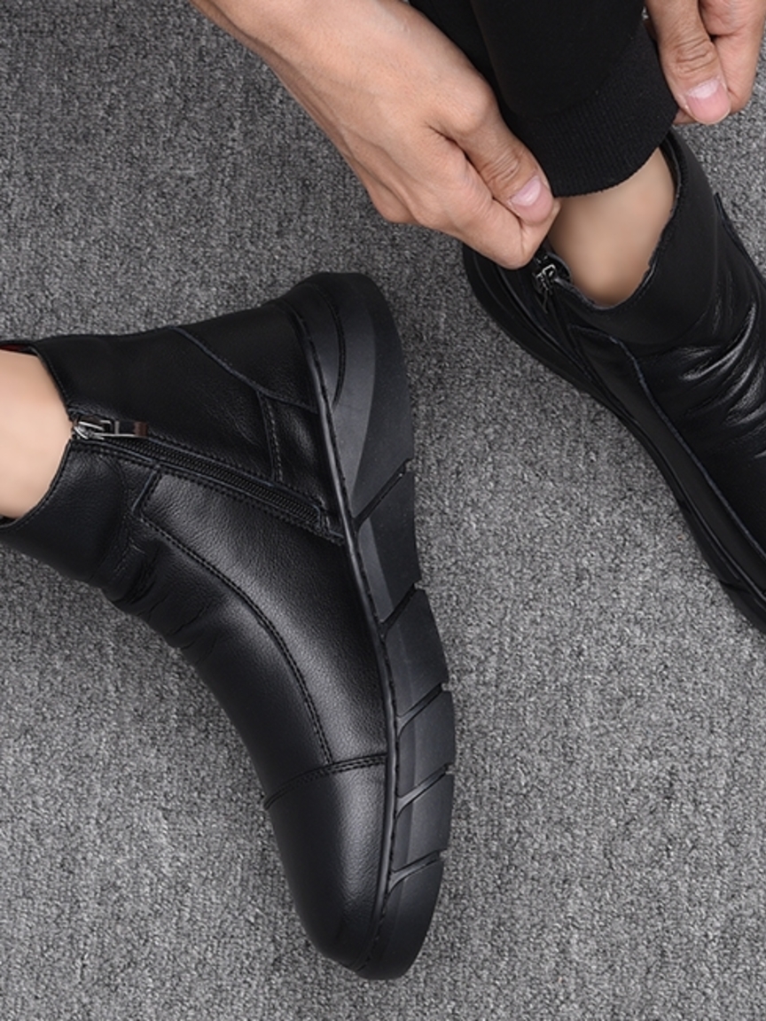 鞋面采用头层牛皮的材质制作,具有良好的弹性、强度和工艺可塑性等特点。不仅如此,头层牛皮还有一定的防水性,并且光泽度高,皮色均匀,耐磨损,而且用头层牛皮制作的产品的原皮质感很强,让人看起来就很高端,鞋底采用高品质橡胶大底材质,耐磨防震的同时能带来,能给脚部和身体更好的安全呵护。
