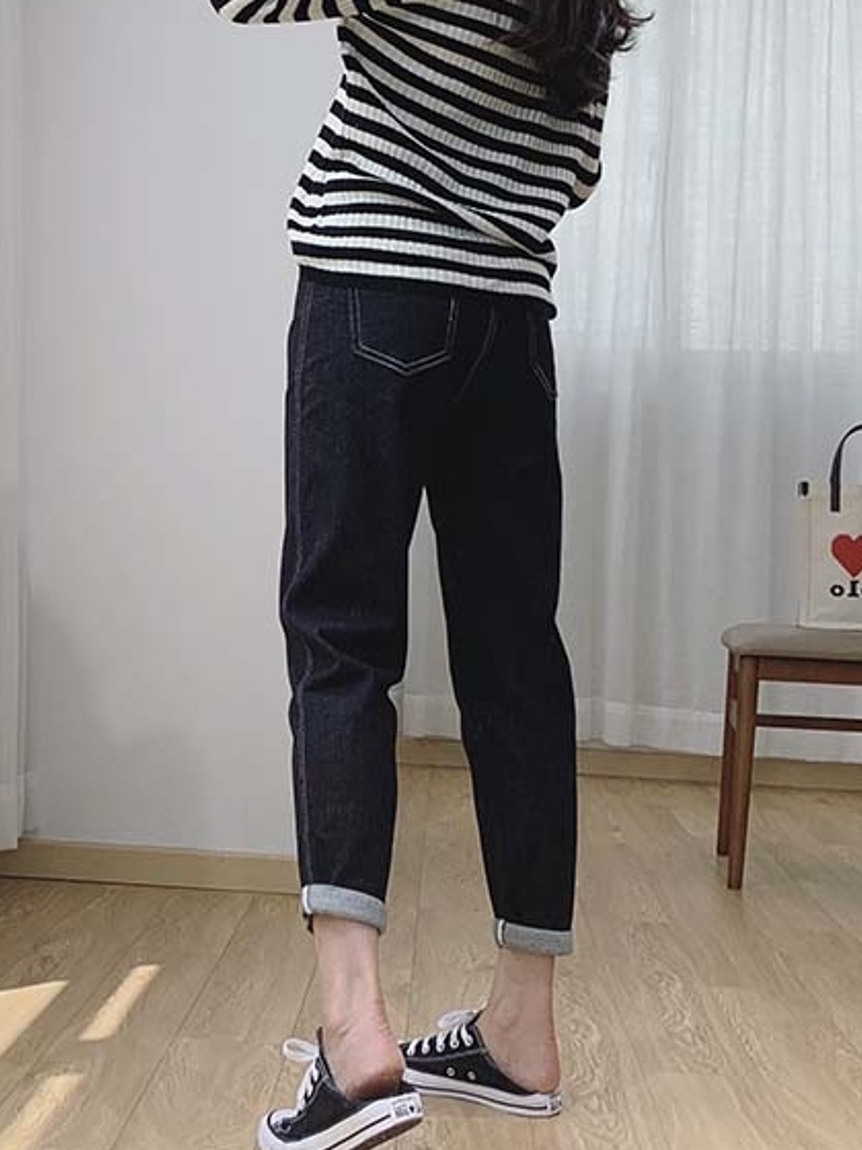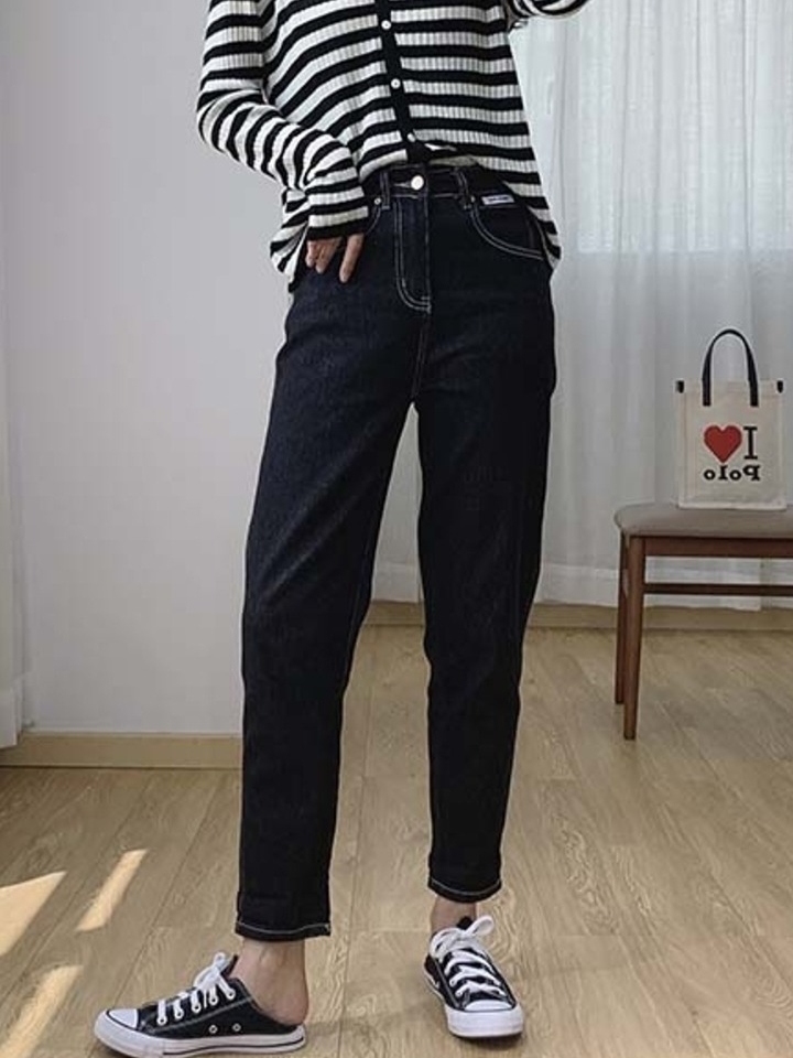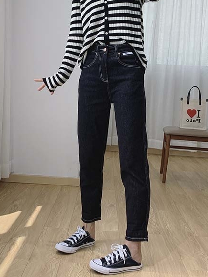 高腰设计,拉长身材比例。高腰牛仔裤,显瘦显腿长。直筒裤型,修饰腿部线条。