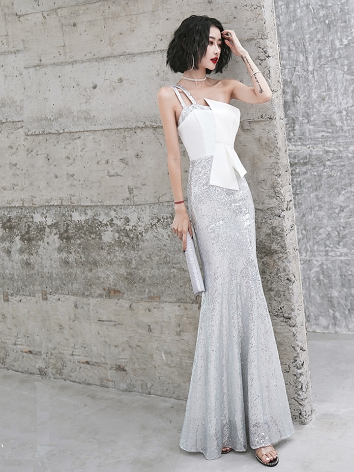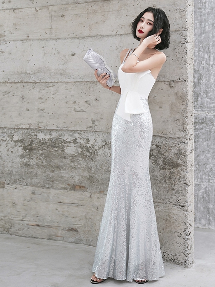 典雅高贵的灰色格调,搭配上领口的亮片刺绣花艺,凸显出轻奢的质感,细节处理的精致更细腻。朦胧的烟纱透着肌肤的香诱,白皙美肌尽显光泽,彰显出穿着者的时尚态度。