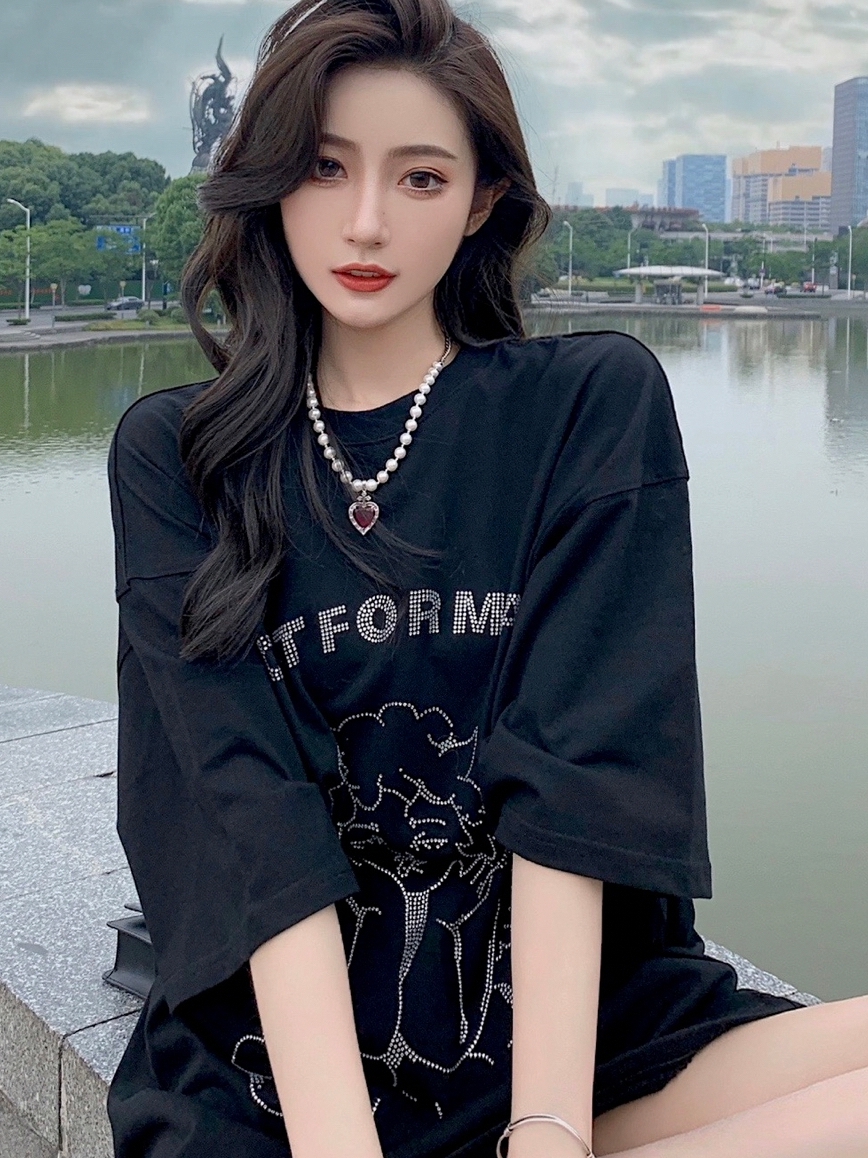 修身的版型,非常的帅气,有型。个性的字母印花设计,潮范儿十足,时尚百搭,简约随性,新颖的圆领设计更显时尚大方。