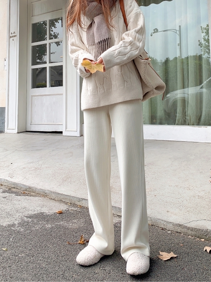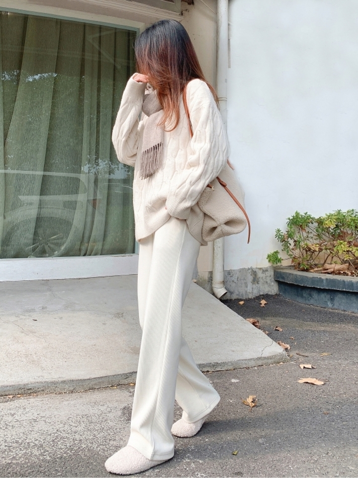 休闲的阔腿裤,裤管没有特别夸张,所以穿起来的时候是比较显瘦的