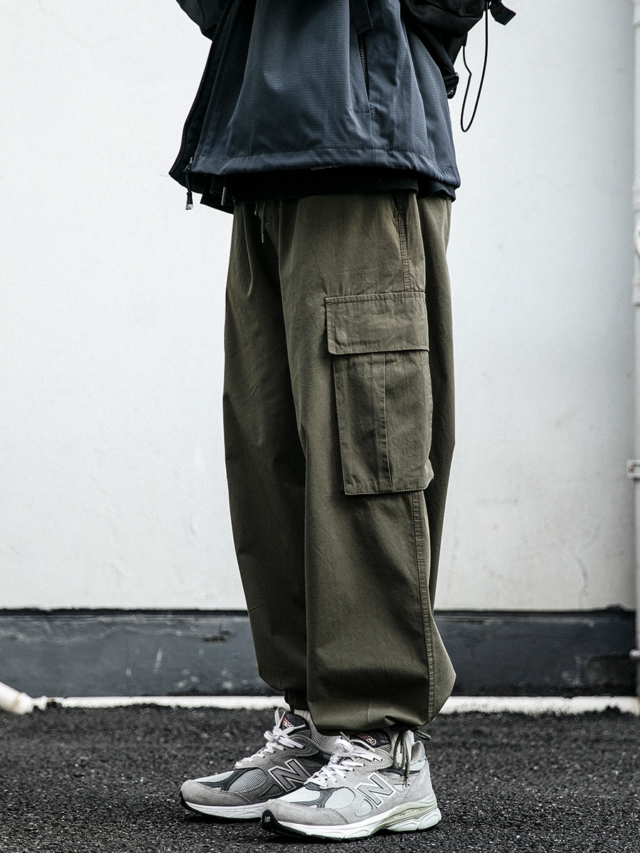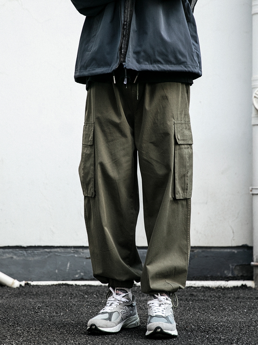 裤身两侧的对称口袋点缀。,立体大方,穿着十分的帅气,抽绳的裤脚,让宽松的裤身穿着不会有臃肿感。