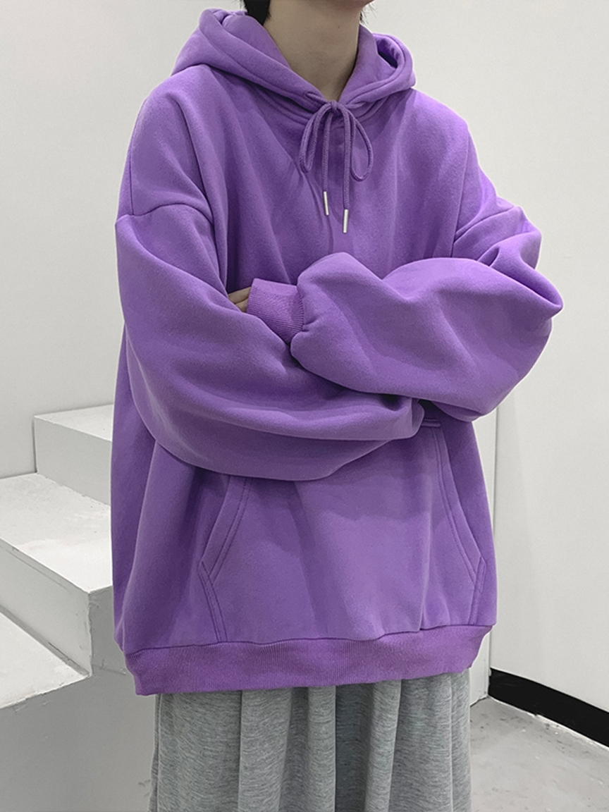 一款休闲时尚的纯色连帽卫衣,版型设计的很宽松, 对身材有很好的包容性,轻松遮肉显瘦,带来了舒适的穿着感。