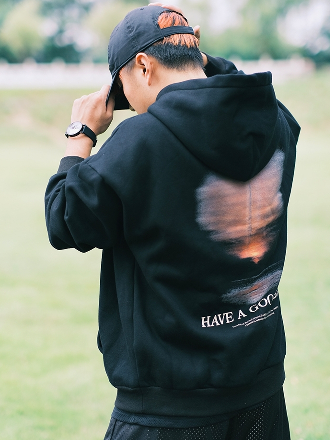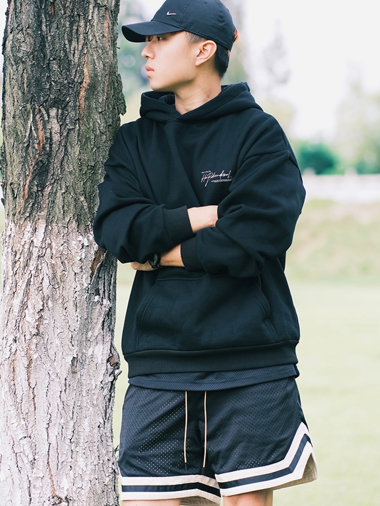 黑色的帅气感总是带着一股深邃悠远的内涵,宽松的版型让穿着更加富有自由感,充满了BF的个性。经典的连帽款式增添了整体的运动效果