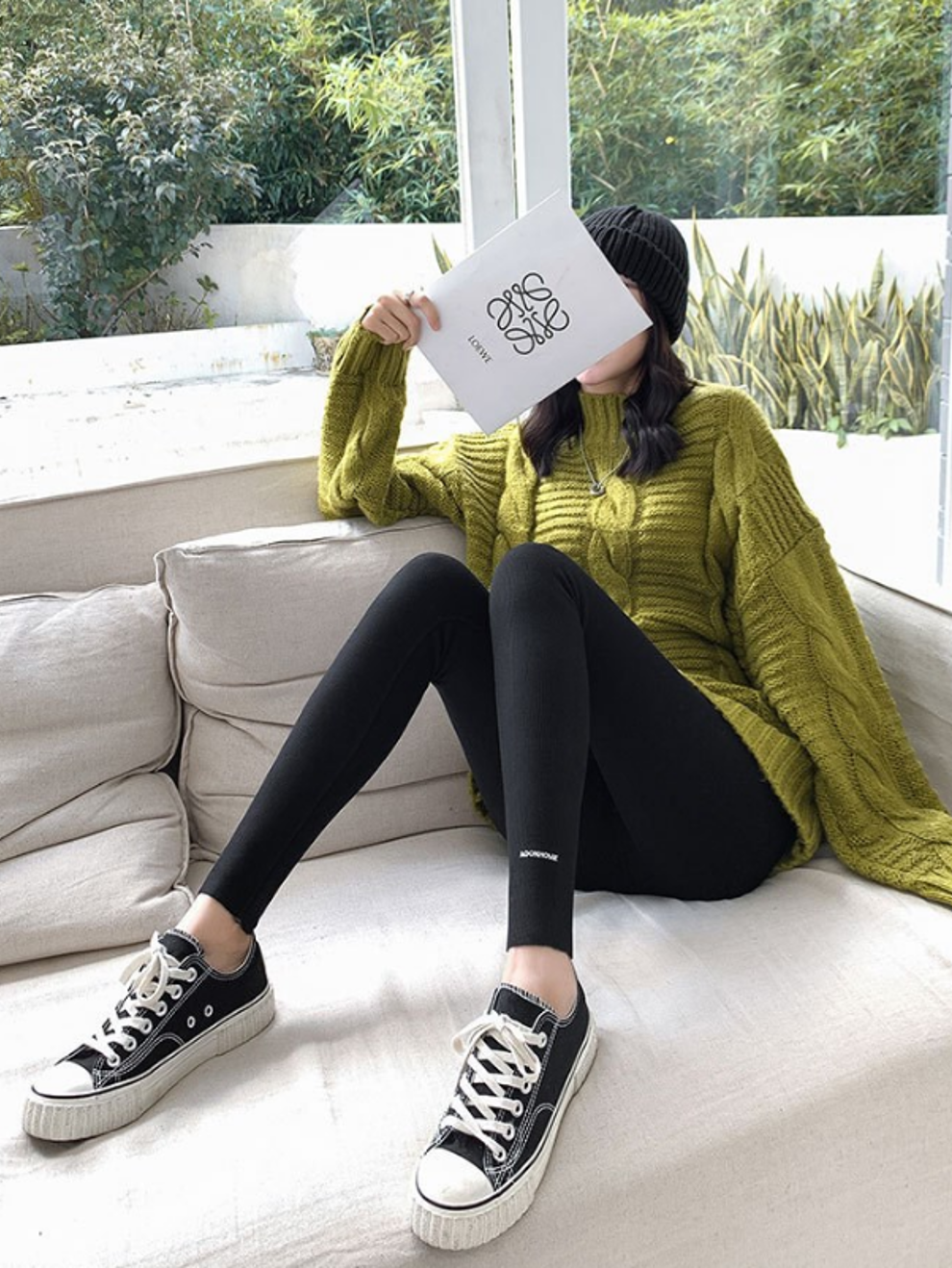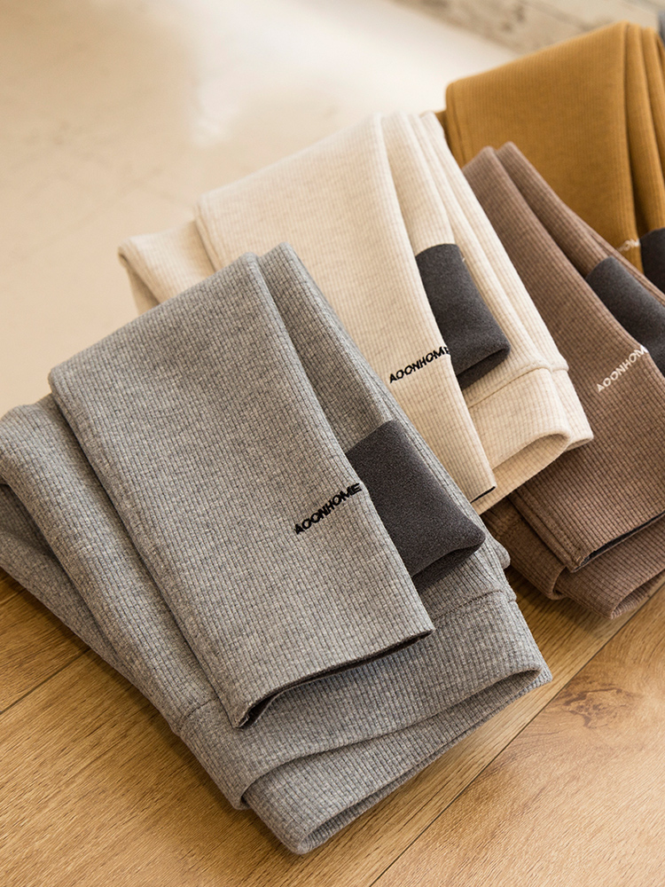 高腰设计拉升腿部比例,搭配修身小脚裤型,上身显瘦显高显腿长。选用棉混纺面料,内里加绒亲肤保暖,九分的裤长露出脚踝洒脱有型。