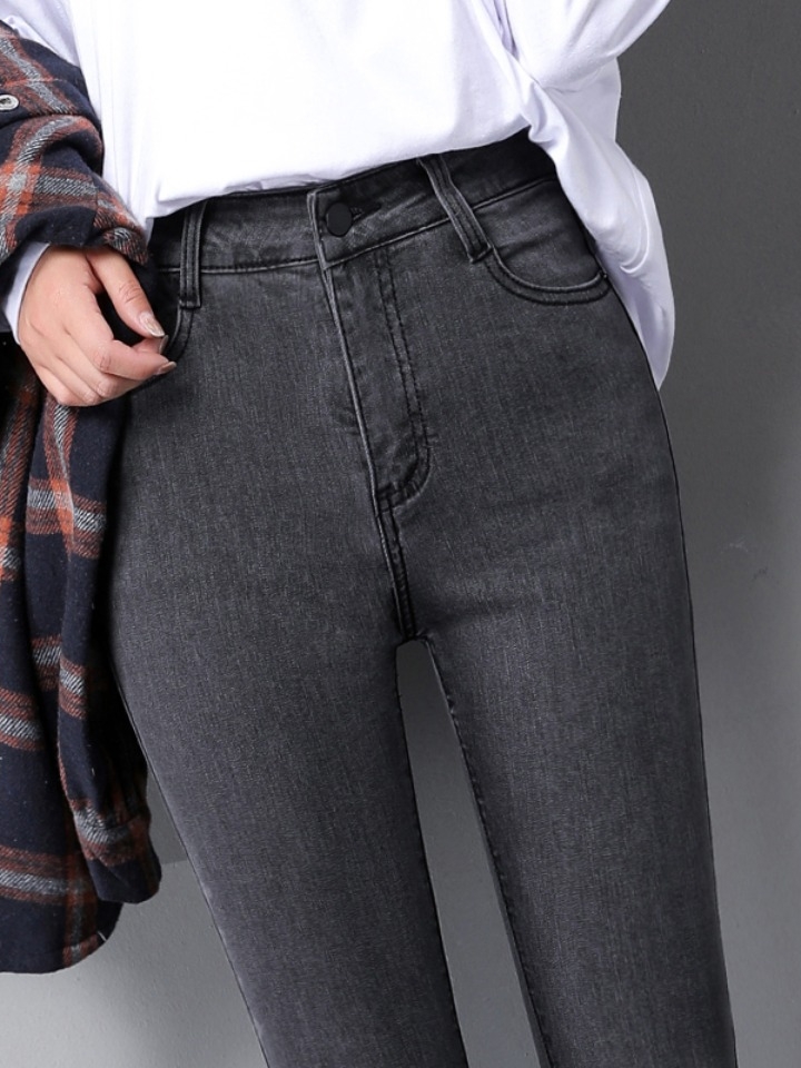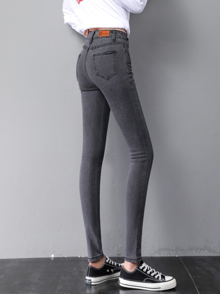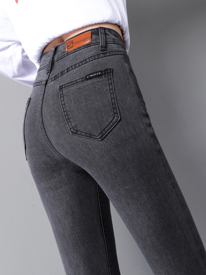 高腰设计,拉长身材比例。高腰牛仔裤,显瘦显腿长。直筒裤型,修饰腿部线条。